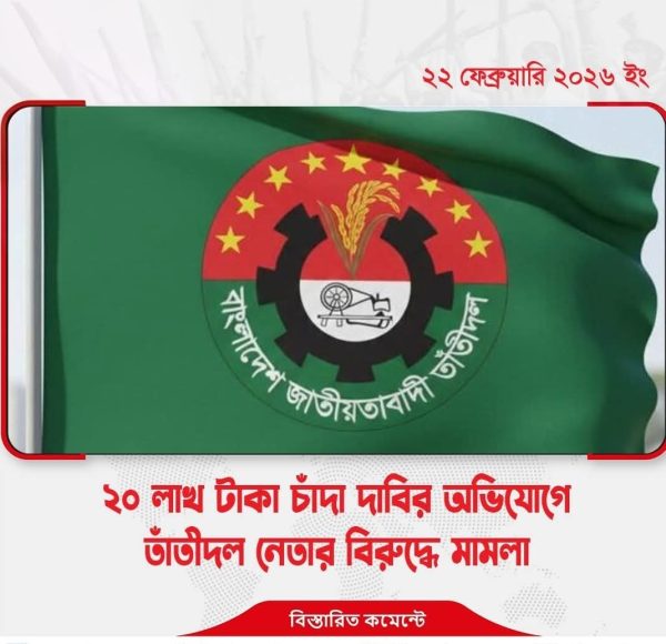 ২০ লাখ টাকা চাঁদা দাবির অভিযোগে তাঁতীদল নেতাসহ ছয়জনের বিরুদ্ধে মামলা