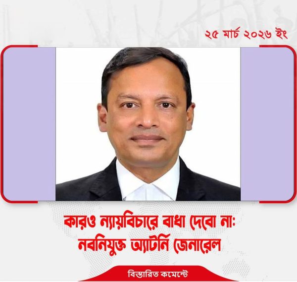 ঢাকা | মার্চ ২৫, ২০২৬ - ৪:৩৬ অপরাহ্ন