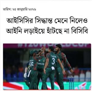 ঢাকা | জানুয়ারী ২৫, ২০২৬ - ১১:১৫ পূর্বাহ্ন