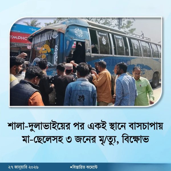 ঢাকা | জানুয়ারী ২৭, ২০২৬ - ৭:২৬ অপরাহ্ন