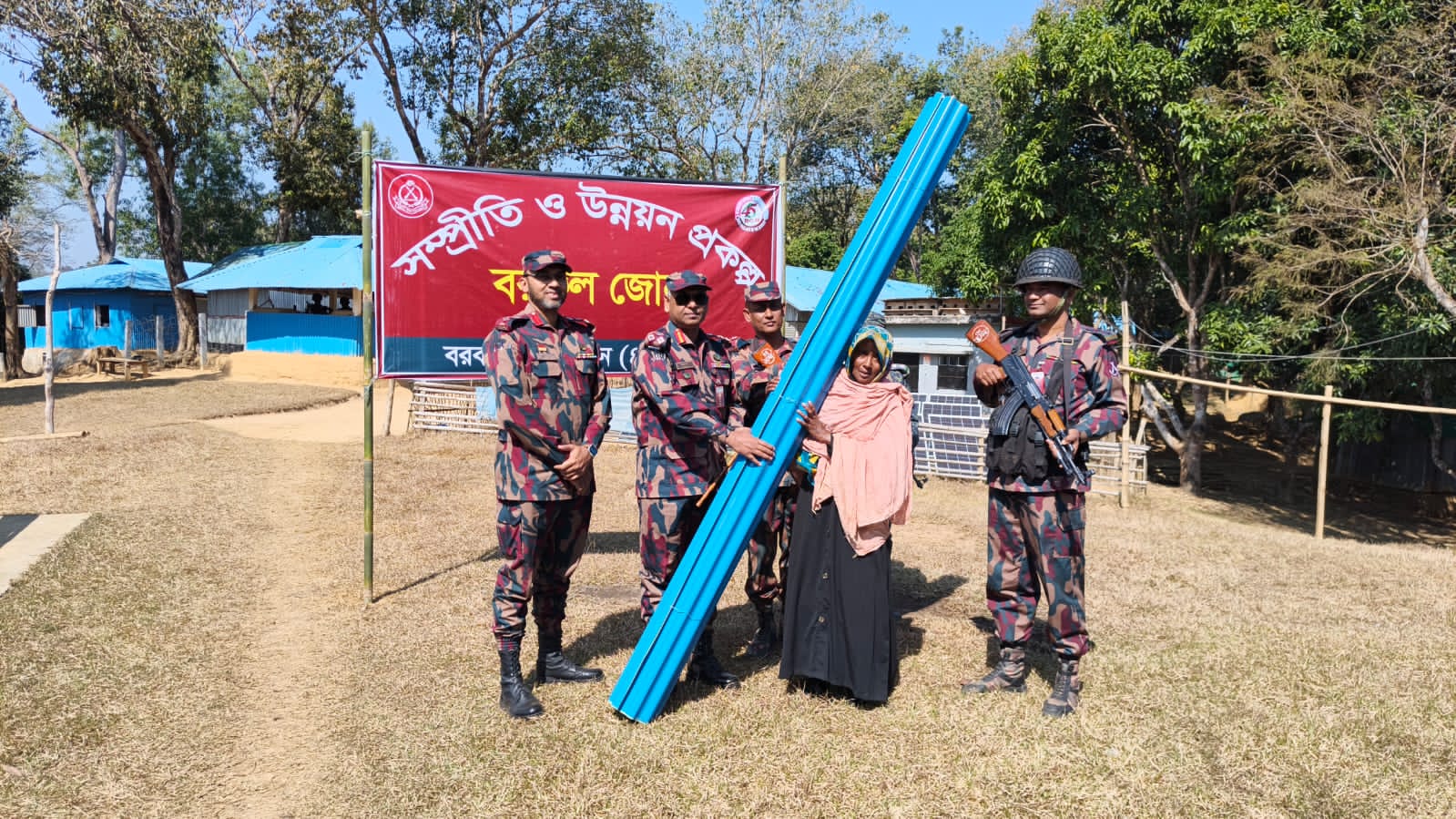 অসহায় বিধবা রানু বেগমের পাশে বিজিবি, ঘর নির্মাণের জন্য পেল ঢেউটিন