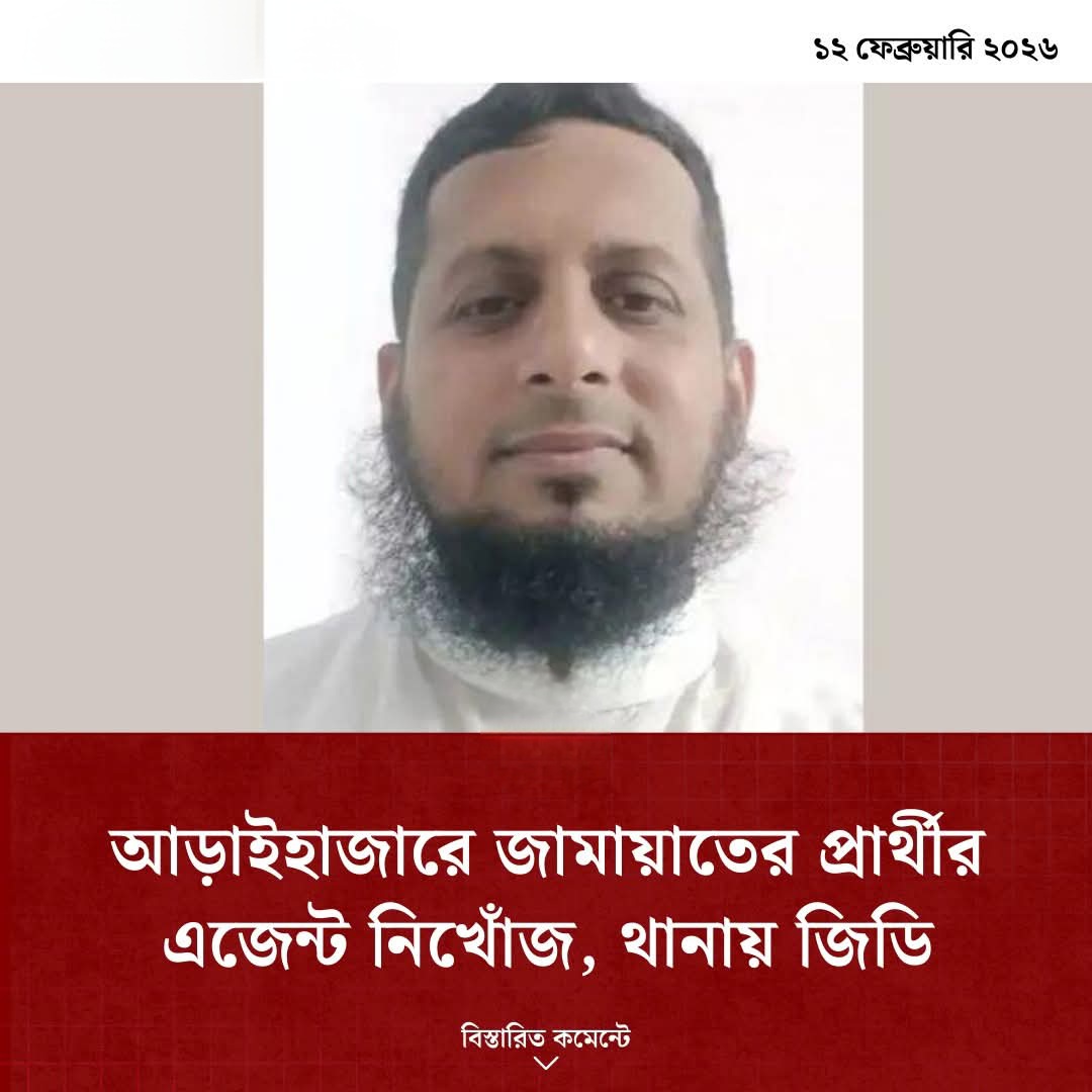 আড়াইহাজারে জামায়াতের প্রার্থীর এজেন্ট নিখোঁজ, থানায় জিডি