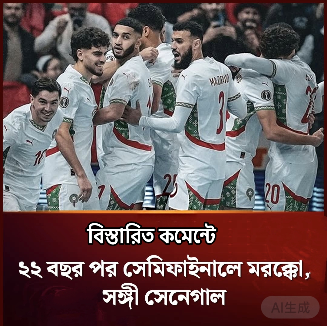 এদিকে, মরক্কোর পর সেমিফাইনালে উঠে গেছে বিশ্ব র্যাংকিংয়ে দ্বিতীয় সেরা আফ্রিকান দল সেনেগাল। ২০২২ সালের চ্যাম্পিয়নরা পশ্চিম আফ্রিকান ডার্বিতে ১০ জনের মালিকে ১-০ গোলে হারিয়েছে। একমাত্র গোল করেন এভারটন ফরোয়ার্ড ইলিমান এনদিয়ায়ে।
