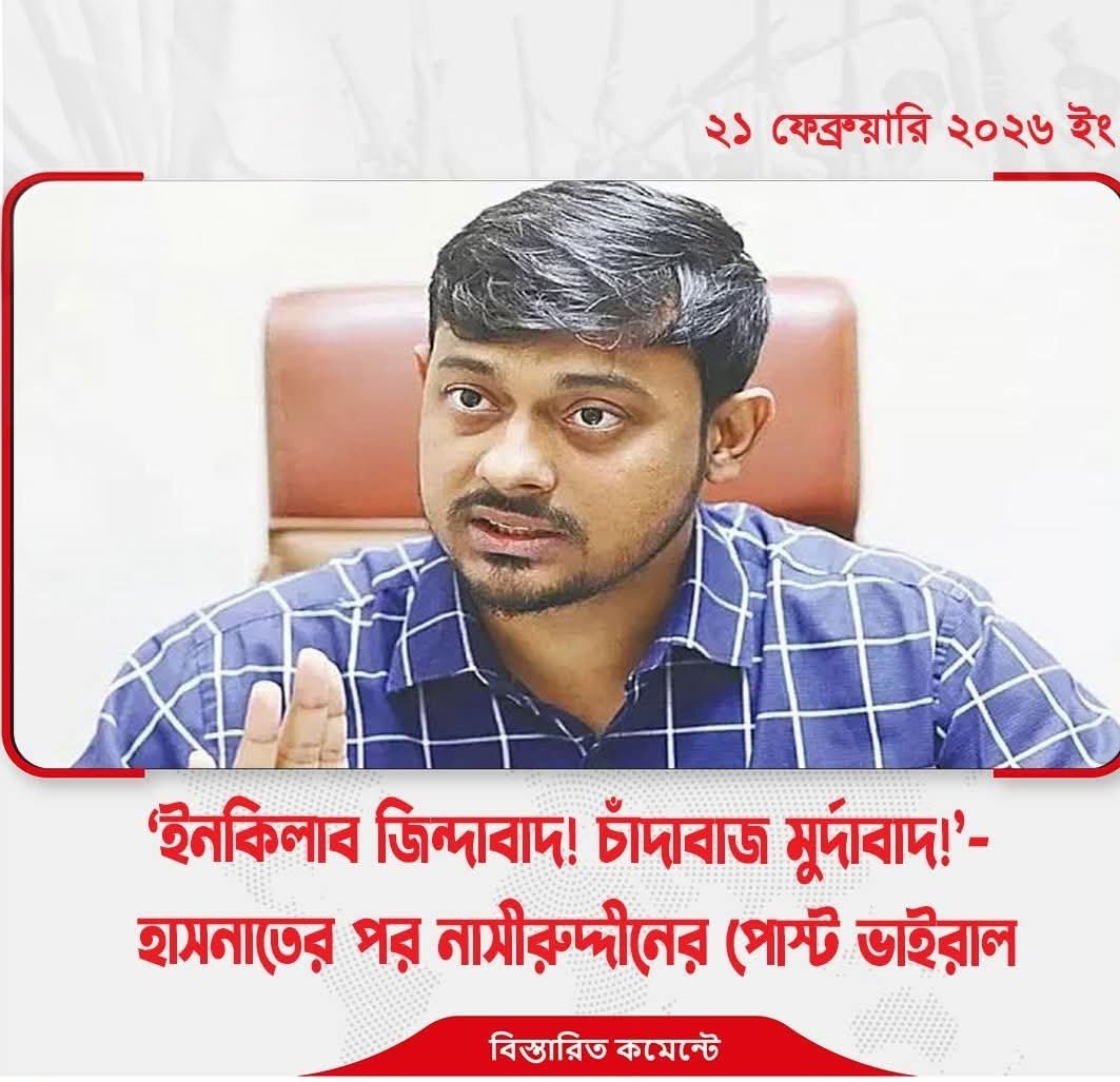শনিবার (২১ ফেব্রুয়ারি) রাত ৭টা ৪০ মিনিটে নিজের ফেসবুক অ্যাকাউন্টে একটি পোস্টে নাসীরুদ্দীন পাটওয়ারী লিখেছেন, ‘ইনকিলাব জিন্দাবাদ! চাঁদাবাজ মুর্দাবাদ!’
