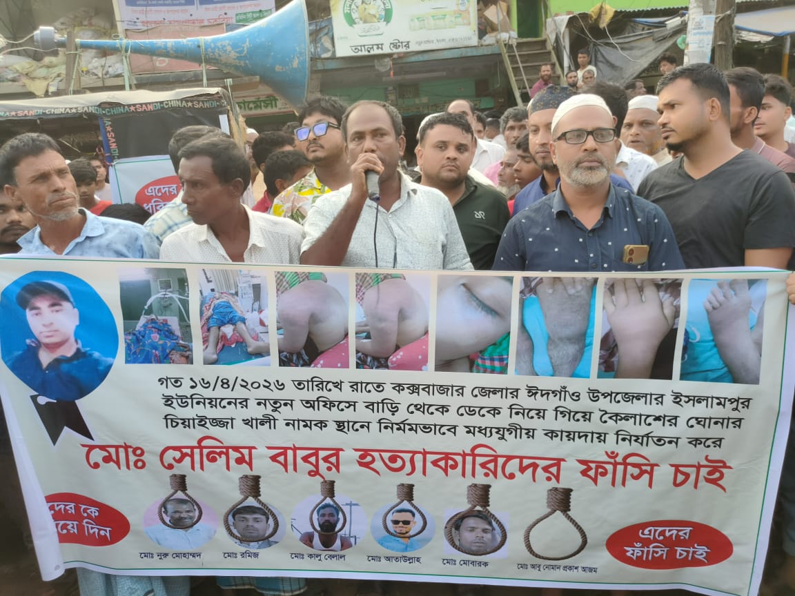 কক্সবাজারের ঈদগাঁও উপজেলার ইসলামপুর ইউনিয়নে মাইক্রোচালক ও তিন সন্তানের জনক ফয়লাল মোহাম্মদ সেলিম বাবু হত্যাকাণ্ডে জড়িতদের গ্রেপ্তার ও ফাঁসির দাবিতে মানববন্ধন ও বিক্ষোভ মিছিল অনুষ্ঠিত হয়েছে।