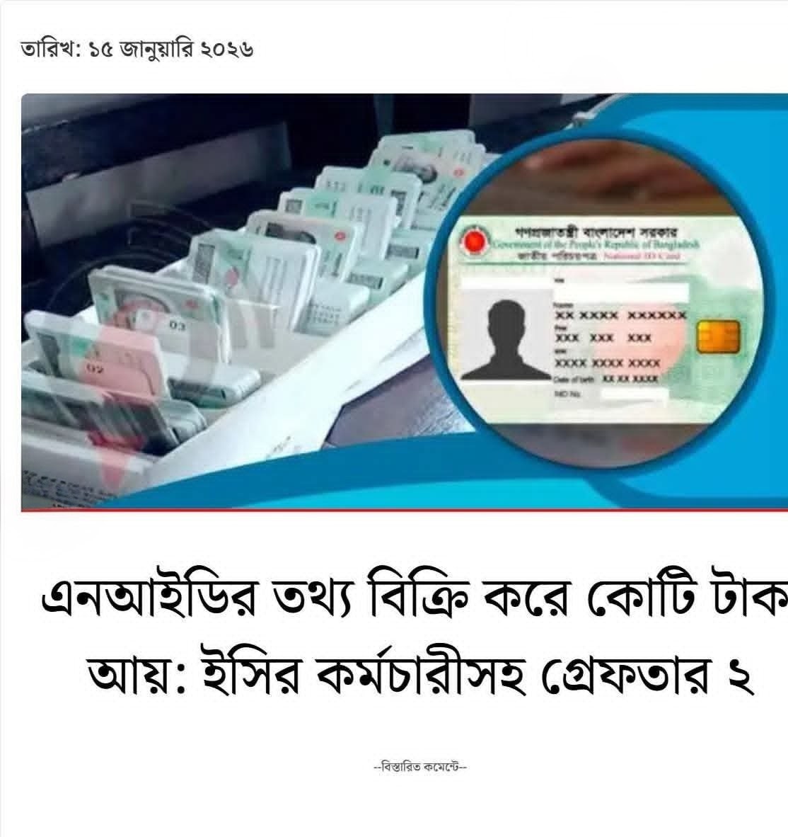 এনআইডির তথ্য বিক্রি করে কোটি টাকা আয়: ইসির কর্মচারীসহ গ্রেফতার ২