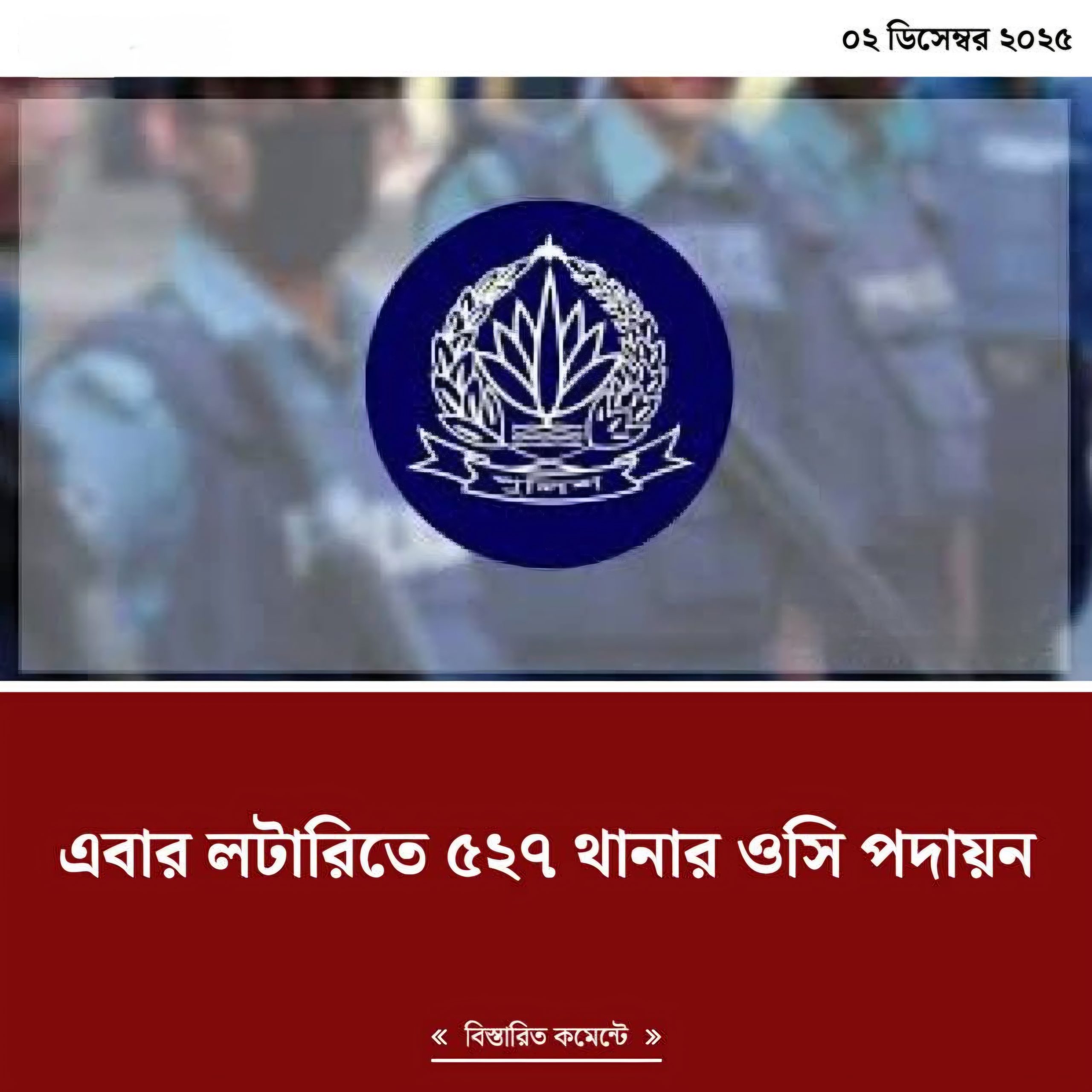 এবার লটারিতে ৫২৭ থানার ওসি পদায়ন