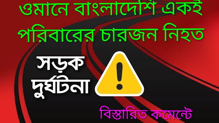 ডেস্ক রিপোর্ট।। মধ্যপ্রাচ্যের দেশ ওমানে সড়ক দুর্ঘটনায় চট্টগ্রামের ফটিকছড়ির একটি পরিবারের চার সদস্য নিহত হয়েছেন।