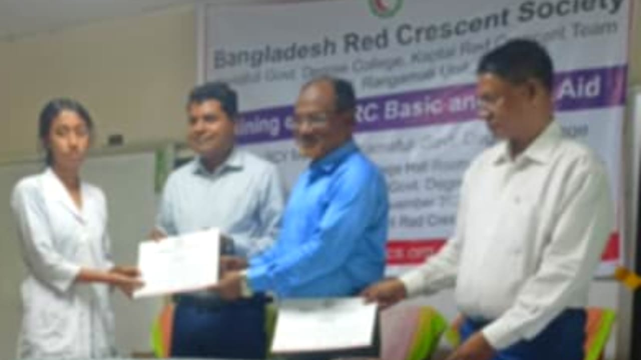 প্রসঙ্গত, গত ১৭ নভেম্বর হতে শুরু হওয়া এই প্রশিক্ষণ ১৯ নভেম্বর পর্যন্ত চলে। এসময় ৪ জন মেধাবী শিক্ষার্থীকে রেড ক্রিসেন্টের ব্যাজ পরিয়ে দেন প্রধান অতিথি।