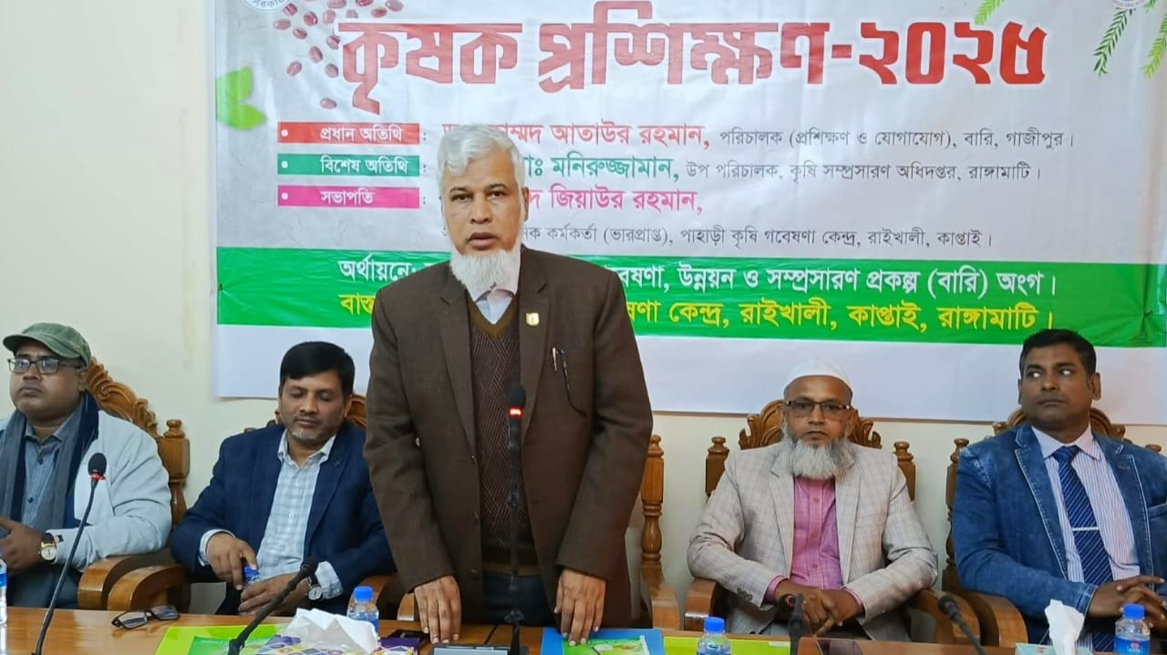 রাইখালী পাহাড়ি কৃষি গবেষণা কেন্দ্রের বৈজ্ঞানিক কর্মকর্তা মাহামুদুল হাসানের সঞ্চালনায় প্রশিক্ষণ অনুষ্ঠানে সভাপতিত্ব করেন কেন্দ্রের প্রধান বৈজ্ঞানিক কর্মকর্তা ড. জিয়াউর রহমান। প্রধান অতিথি হিসেবে উপস্থিত থেকে বক্তব্য রাখেন বাংলাদেশ কৃষি গবেষণা ইনস্টিটিউট, গাজীপুর-এর পরিচালক (প্রশিক্ষণ ও যোগাযোগ) ড. মুহাম্মদ আতাউর রহমান।