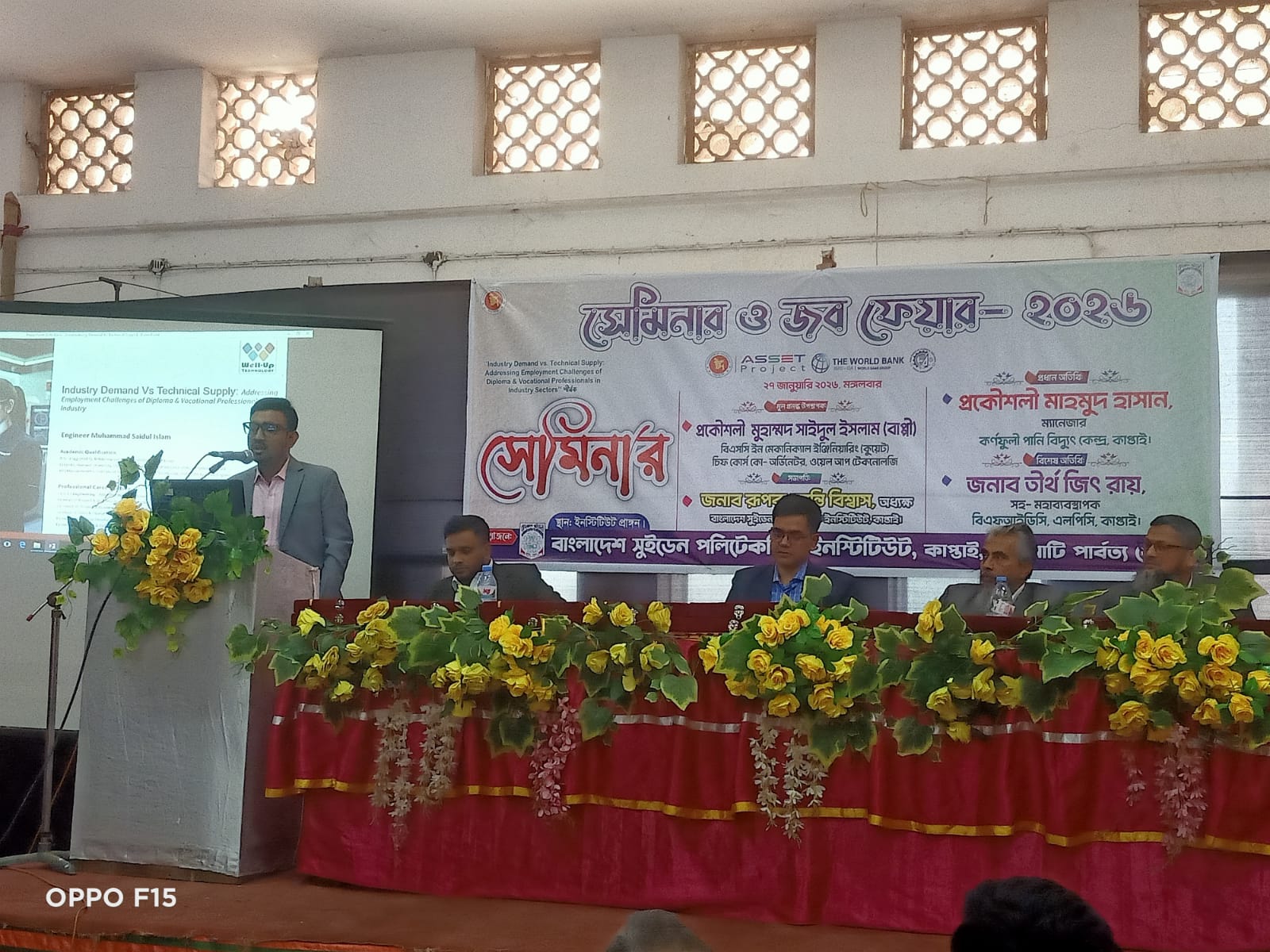 রাঙামাটির কাপ্তাইয়ে অবস্থিত বাংলাদেশ সুইডেন পলিটেকনিক ইনস্টিটিউট (বিএসপিআই)-এর আয়োজনে মঙ্গলবার (২৭ জানুয়ারি) প্রতিষ্ঠানটির সিভিল (উড) ডিপার্টমেন্টের শ্রেণীকক্ষে সেমিনার ও জব ফেয়ার–২০২৬ অনুষ্ঠিত হয়। এতে প্রধান অতিথি হিসেবে উপস্থিত থেকে বক্তব্য প্রদান করেন কাপ্তাই কর্ণফুলী পানি বিদ্যুৎ কেন্দ্রের ব্যবস্থাপক প্রকৌশলী মাহমুদ হাসান। বিএসপিআই-এর অধ্যক্ষ রূপক কান্তি বিশ্বাস এতে সভাপতিত্ব করেন এবং সেমিনারের শুভ উদ্বোধন ঘোষণা করেন। এ সময় মূল প্রবন্ধ উপস্থাপন করেন প্রকৌশলী মুহাম্মদ সাইদুল ইসলাম (বাপ্পী), বিএসসি ইন মেকানিক্যাল ইঞ্জিনিয়ারিং (কুয়েট), চিফ কোর্স কো-অর্ডিনেটর, ওয়েল আপ টেকনোলজি। অনুষ্ঠানে স্বাগত বক্তব্য রাখেন ইঞ্জিনিয়ার রহমত উল্লাহ, চিফ ইন্সট্রাক্টর, অটোমোবাইল ডিপার্টমেন্ট, বিএসপিআই। মো. তারেকুল ইসলাম, চিফ ইন্সট্রাক্টর, কম্পিউটার ডিপার্টমেন্ট, বিএসপিআই-এর সঞ্চালনায় অনুষ্ঠিত সভায় বাংলাদেশের বিভিন্ন স্থান থেকে আগত কোম্পানির প্রতিনিধি, চাকরি প্রত্যাশী এবং প্রতিষ্ঠানের শিক্ষক-শিক্ষার্থীরা উপস্থিত ছিলেন। সেমিনারে দেশের বিভিন্ন প্রান্ত থেকে আগত ২০টি শিল্প প্রতিষ্ঠান চাকরি প্রত্যাশী ডিপ্লোমা প্রকৌশলীদের চাকরি প্রদানের নিমিত্তে তাদের স্টল দেয়। চাকরি প্রত্যাশীরা চাকরি পাওয়ার আশায় স্টলে সিভি জমা দেওয়ার সুবিধার্থে এই আয়োজন করা হয়েছে বলে বিএসপিআই-এর অধ্যক্ষ জানান।