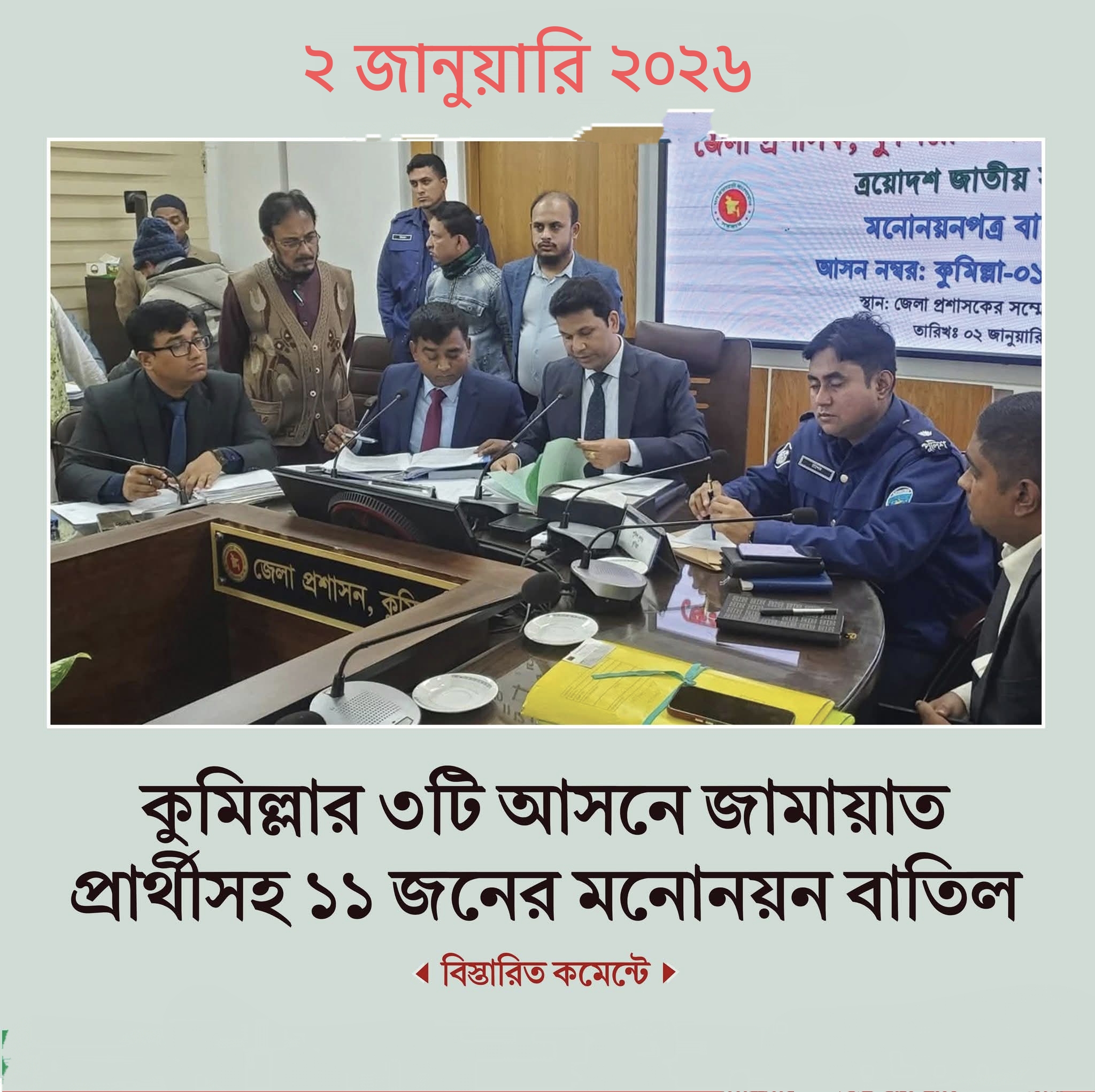 কুমিল্লায় জামায়াতের প্রার্থীসহ ১১ জনের মনোনয়ন বাতিল