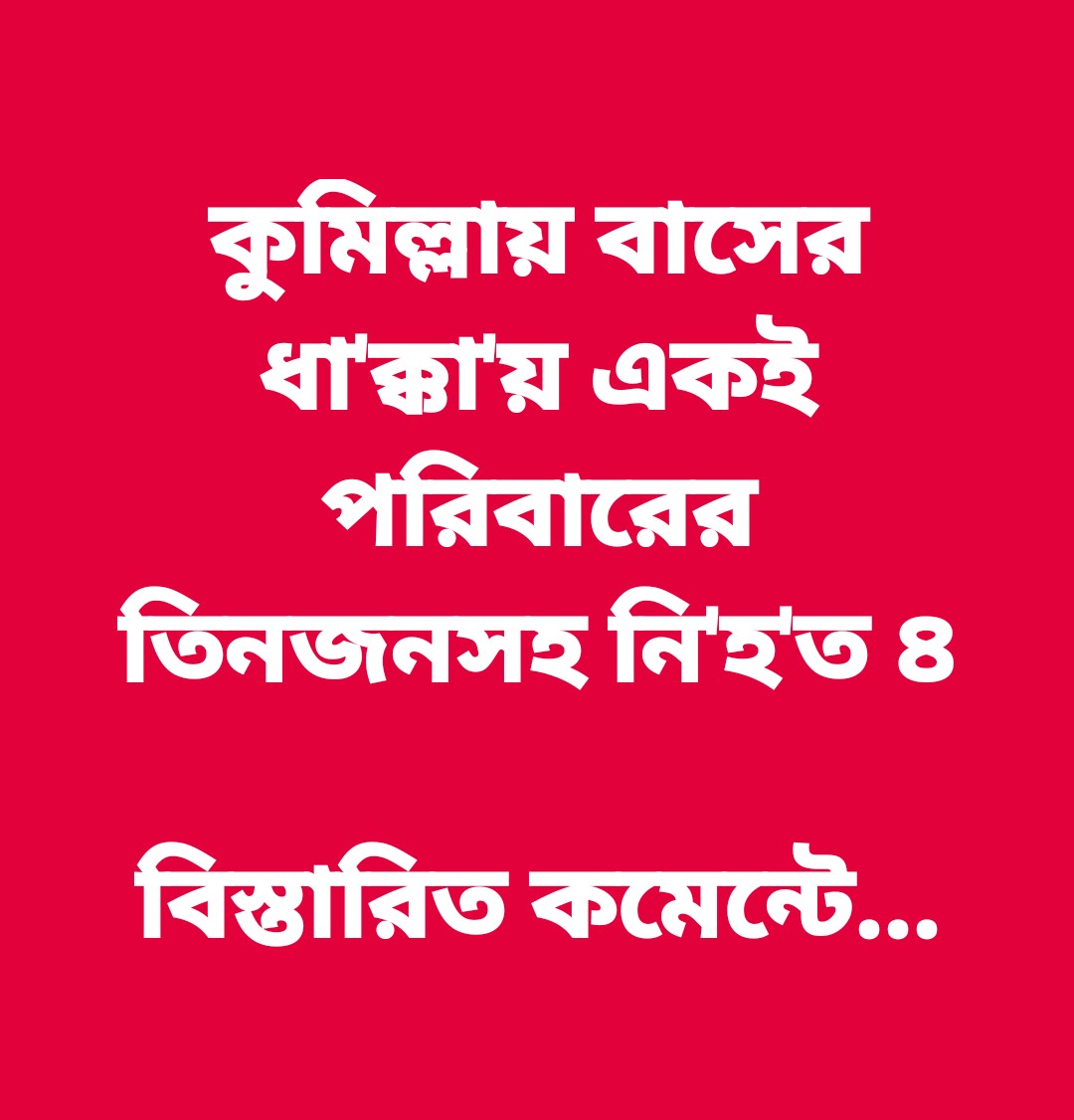 কুমিল্লায় বাসের ধাক্কায় একই পরিবারের তিনজনসহ চারজন নিহত