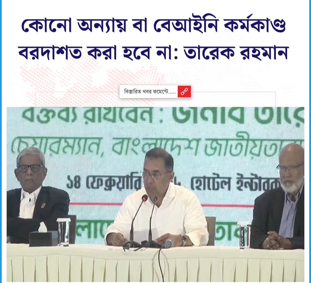 কোনো অন্যায় বা বেআইনি কর্মকাণ্ড বরদাশত করা হবে না: তারেক রহমান