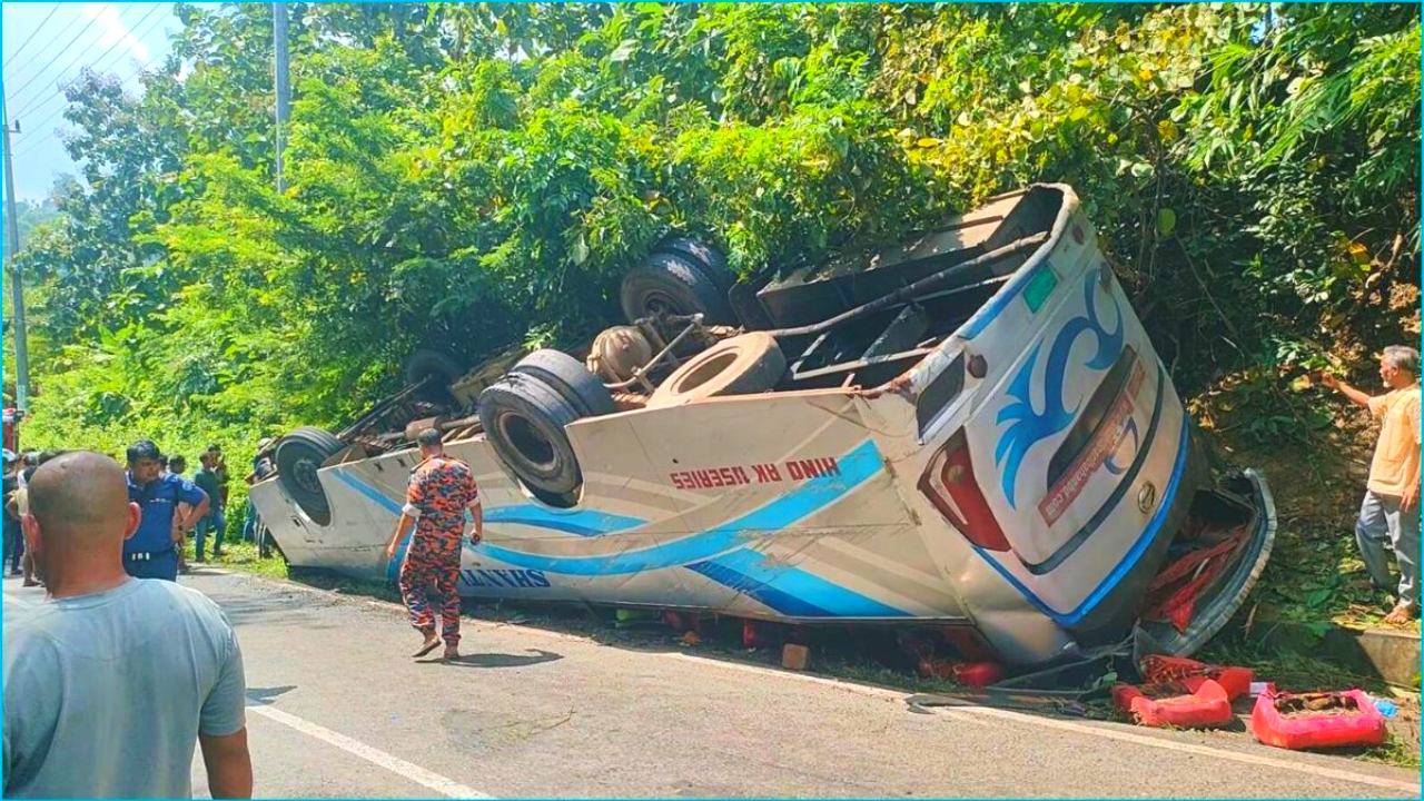 খাগড়াছড়িতে বাস উল্টে নিহত ২, আহত অন্তত ১২