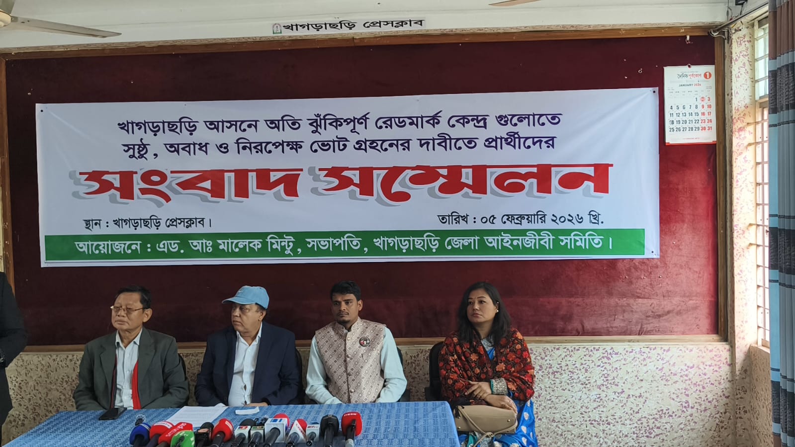খাগড়াছড়ি আসনের রেডমার্ক কেন্দ্রগুলোতে সুষ্ঠু ভোটের দাবিতে প্রার্থীদের সংবাদ সম্মেলন