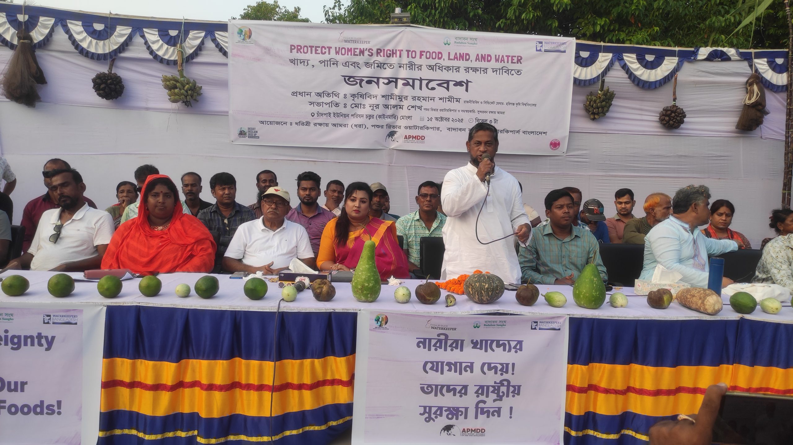 উপকূলীয় নারী, বনজীবী, মৎস্যজীবী, ভূমিহীন, জলবায়ু উদ্বাস্তুসহ নানা শ্রেণি-পেশার মানুষের অংশগ্রহণে খাদ্য, পানি এবং জমিতে নারীর অধিকার রক্ষার দাবিতে এ জনসমাবেশ অনুষ্ঠিত হয়।