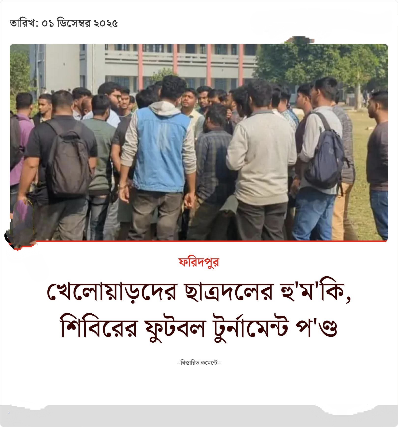 খেলোয়াড়দের ছাত্রদলের হুমকি, শিবিরের ফুটবল টুর্নামেন্ট পণ্ড