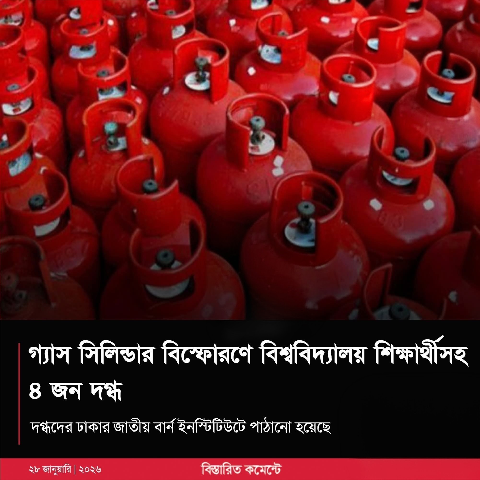 গ্যাস সিলিন্ডার বিস্ফোরণে জাবি শিক্ষার্থীসহ চারজন দগ্ধ