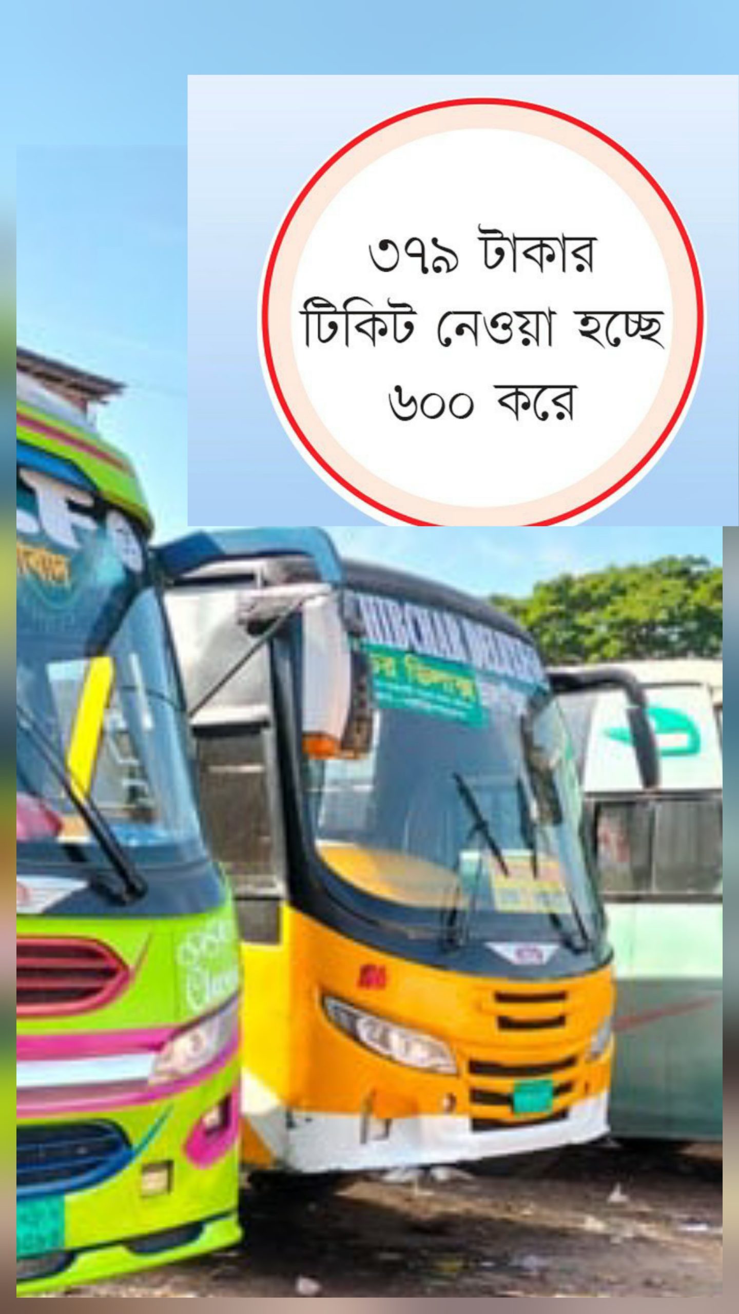 বৃহস্পতিবার ঢাকায় সড়ক পরিবহণ দপ্তর থেকে দেওয়া ঘোষণা অনুযায়ী আন্তঃজেলা রুটে কিলোমিটারপ্রতি ১১ পয়সা ভাড়া বাড়িয়েছে সরকার। সেই হিসাবে ঢাকা-বরিশাল রুটের ১৭০ কিলোমিটার পথের ভাড়া বেড়েছে ১৮ দশমিক ৭০ টাকা। ফলে এ রুটে নতুন ভাড়া হওয়ার কথা ৩৭৯ টাকা। কিন্তু সরকার নির্ধারিত ভাড়ার চেয়ে ১১ গুণেরও বেশি ২২১ টাকা বাড়িয়ে টিকিটপ্রতি আদায় করা হচ্ছে ৬০০ টাকা।