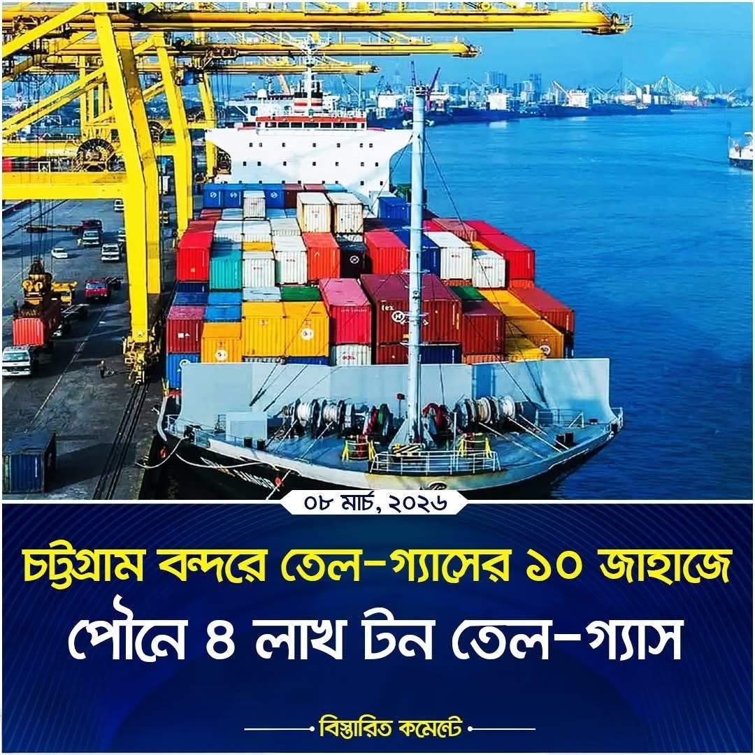 নিজস্ব প্রতিবেদক।। চট্টগ্রাম বন্দরে তেল-গ্যাসের ১০ জাহাজে সব মিলিয়ে পৌনে ৪ লাখ টন তেল-গ্যাস রয়েছে। মধ্যপ্রাচ্যে যু’দ্ধ ছড়িয়ে পড়ায় বাংলাদেশে তেল-গ্যাস আমদানি নিয়ে অনিশ্চয়তা তৈরি হয়েছে, ঠিক এমন সময়ে তেল-গ্যাস নিয়ে চট্টগ্রাম বন্দরে আসছে ১০টি জাহাজ। হরমুজ প্রণালি বন্ধের আগে পারস্য উপসাগরের দেশসহ বিশ্বের বিভিন্ন দেশ থেকে এসব জাহাজ চট্টগ্রামে পৌঁছাতে শুরু করেছে।