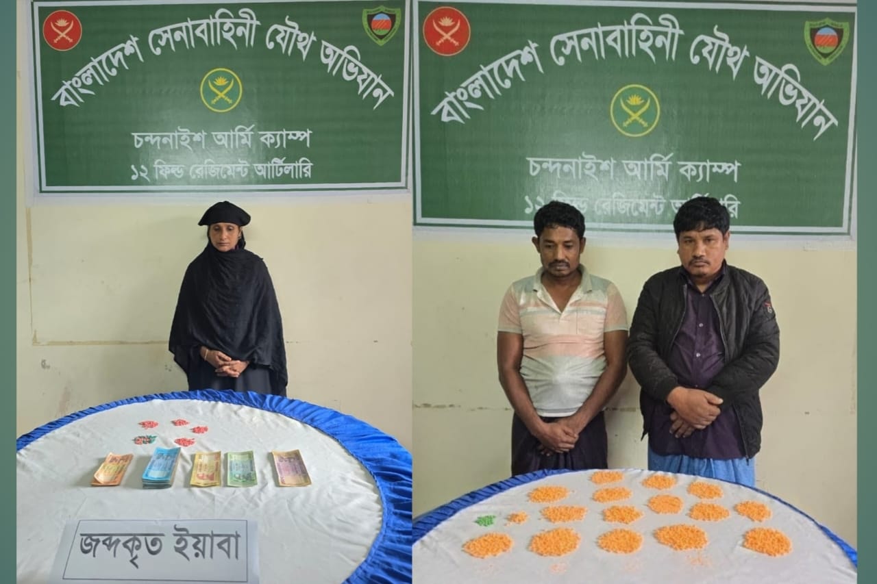 চন্দনাইশে সেনাবাহিনীর অভিযানে ৩ মাদক ব্যবসায়ী গ্রেফতার