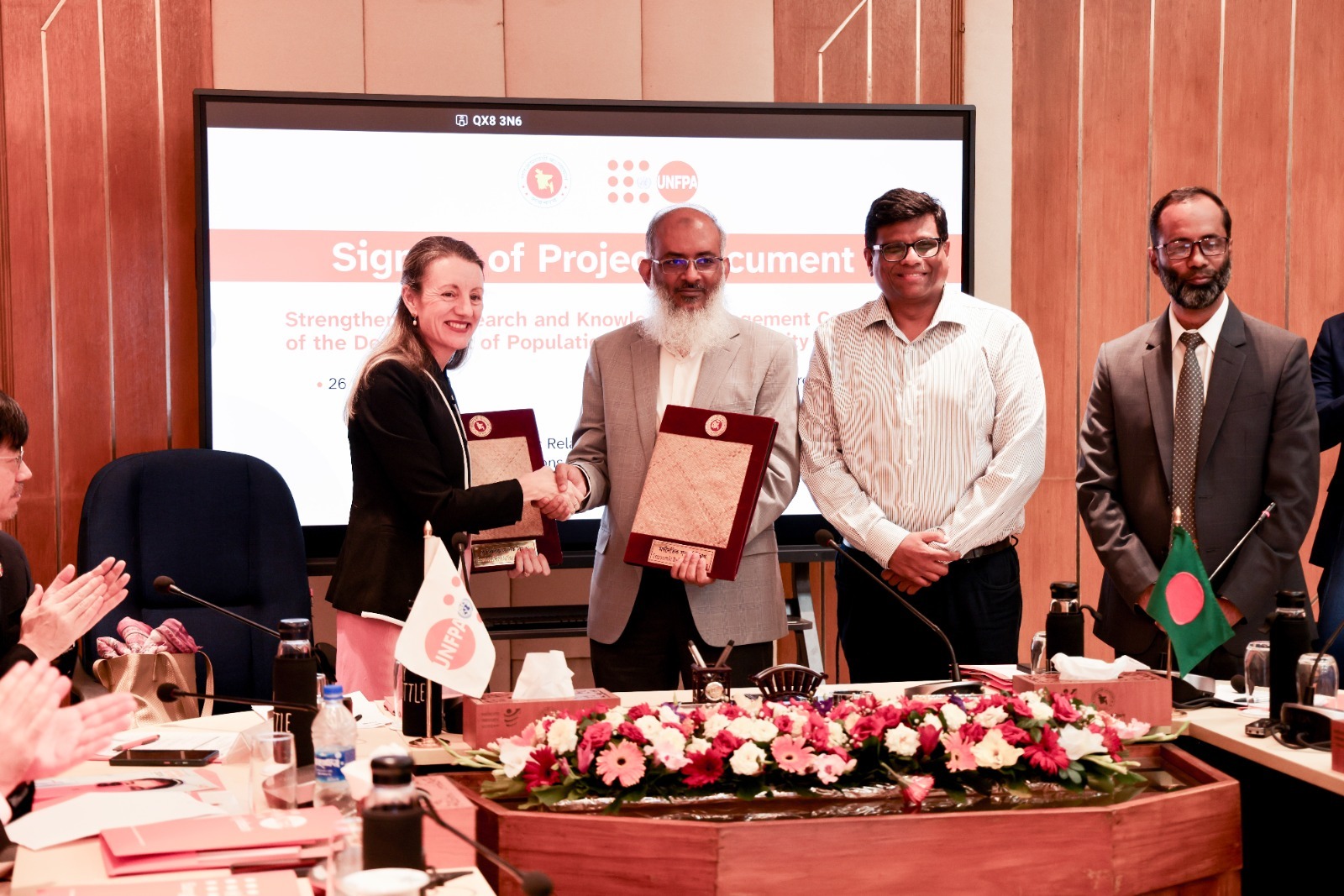 উল্লেখ্য, এই অংশীদারিত্ব চুক্তির আওতায় `Strengthening Research and Knowledge Management Capacity of the Department of Population Sciences, University of Dhaka,’ শীর্ষক একটি প্রকল্প বাস্তবায়ন করা হবে। এটি জাতীয় নীতি নির্ধারণে তথ্য এবং জনসংখ্যাগত বুদ্ধিমত্তা ব্যবহারের জন্য বাংলাদেশের সক্ষমতা বৃদ্ধির ক্ষেত্রে একটি গুরুত্বপূূর্ণ পদক্ষেপ। বাংলাদেশ সরকার এবং ইউএনএফপিএ যৌথভাবে এই প্রকল্পে অর্থায়ন করবে। প্রকল্পটির বাস্তবায়নকারী প্রতিষ্ঠান হিসেবে কাজ করবে ঢাকা বিশ্ববিদ্যালয়। এই প্রকল্পের লক্ষ্য মানসম্পন্ন গবেষণার জন্য ঢাকা বিশ্ববিদ্যালয় পপুলেশন সায়েন্সেস বিভাগকে একটি জাতীয় উৎকর্ষ কেন্দ্রে রূপান্তরিত করা। আন্তঃপ্রজন্মগত সংলাপ আয়োজন, জনসংখ্যাগত লভ্যাংশ, প্রজনন প্রবণতা, জলবায়ু পরিবর্তন, লিঙ্গ সমতা, বাল্যবিবাহ এবং নগরায়নের মতো গুরুত্বপূর্ণ বিষয়ে নীতিগত সিদ্ধান্ত গ্রহণের ক্ষেত্রেও এই প্রকল্প সহায়ক ভূমিকা পালন করবে বলে আশা করা যাচ্ছে।