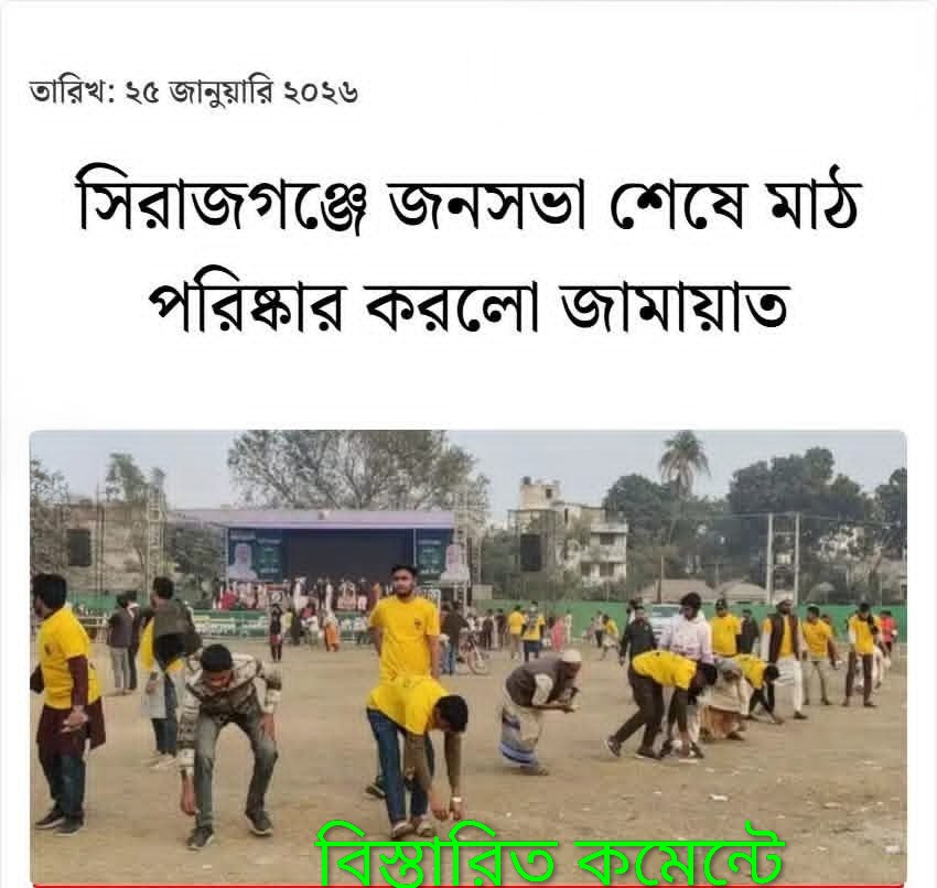 জানা যায়, দুপুর ২টা থেকে থেকে শুরু হওয়া নির্বাচনি জনসভা বিকেল সোয়া ৪টার দিকে শেষ হয়। এরপর সিরাজগঞ্জ পৌর জামায়াতের আমির আব্দুল লতিফের নেতৃত্বে মাঠে পরিষ্কার ও পরিছন্নতা অভিযান চালানো হয়। এতে দলীয় নেতাকর্মী ছাড়াও সাধারণ মানুষ অংশ নেন।