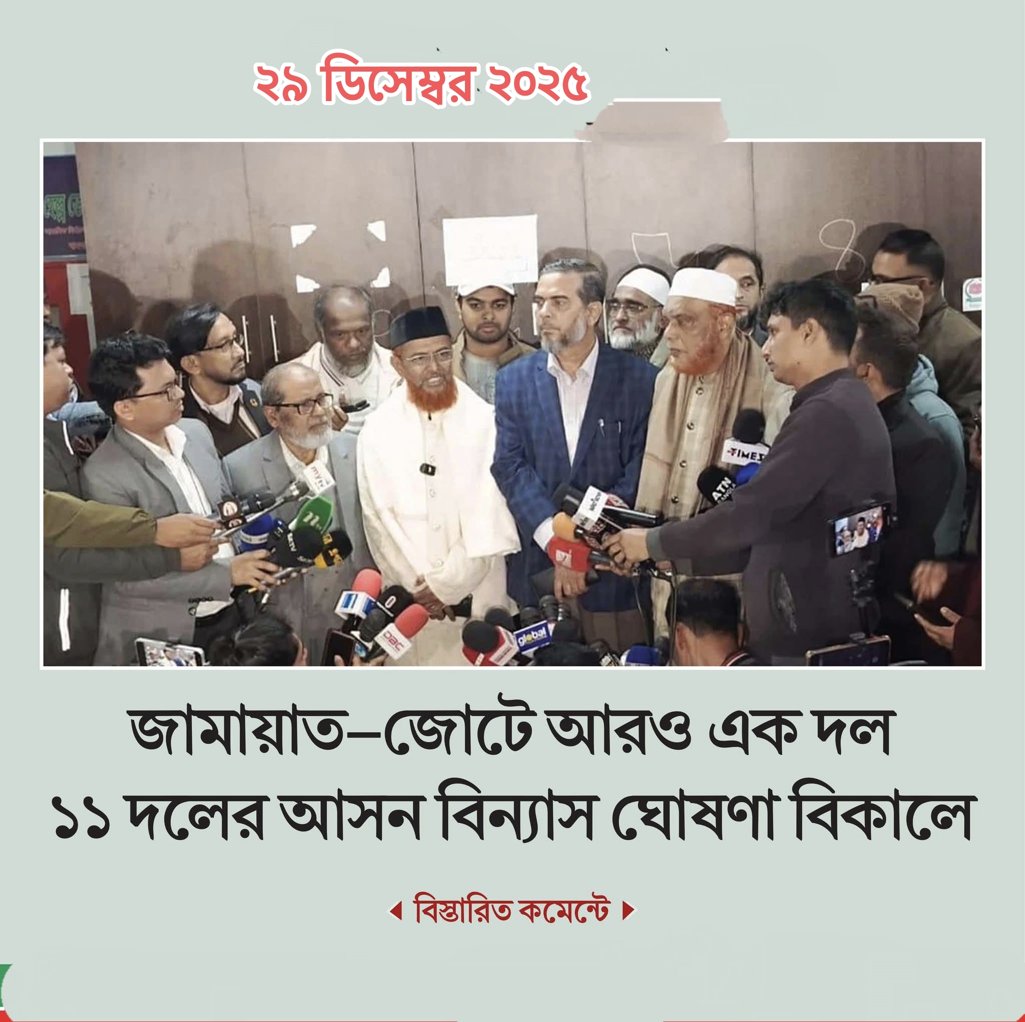 জামায়াত-জোটে আরও এক দল, ১১ দলের আসন বিন্যাস ঘোষণা বিকালে