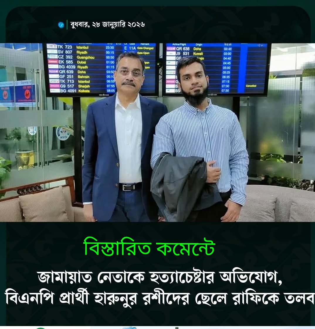 জামায়াত নেতাকে হত্যাচেষ্টার অভিযোগ, বিএনপি প্রার্থী হারুনুর রশীদের ছেলে রাফিকে তলব