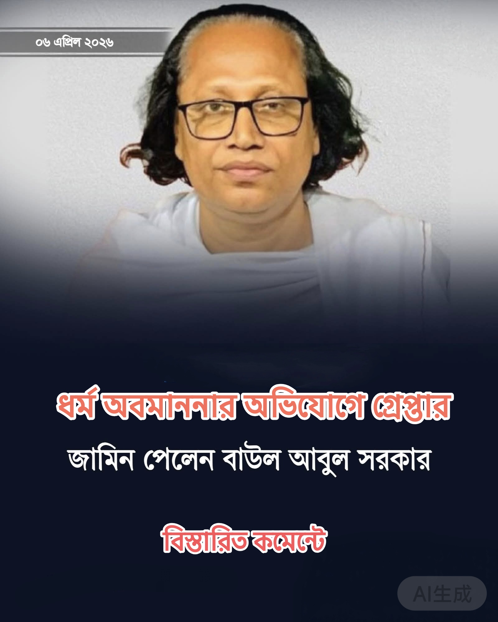 ডেস্ক রিপোর্ট।। ধর্ম অবমাননার অভিযোগে গ্রেপ্তার বাউলশিল্পী আবুল সরকারকে জামিন দিয়েছেন হাইকোর্ট। আজ সোমবার (৬ এপ্রিল) বিচারপতি আতোয়ার রহমান ও বিচারপতি সগীর হোসেনের হাইকোর্ট বেঞ্চ এই আদেশ দেন।