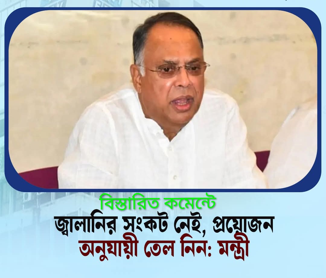 জ্বালানির সংকট নেই, প্রয়োজন অনুযায়ী তেল নিন: ইকবাল হাসান