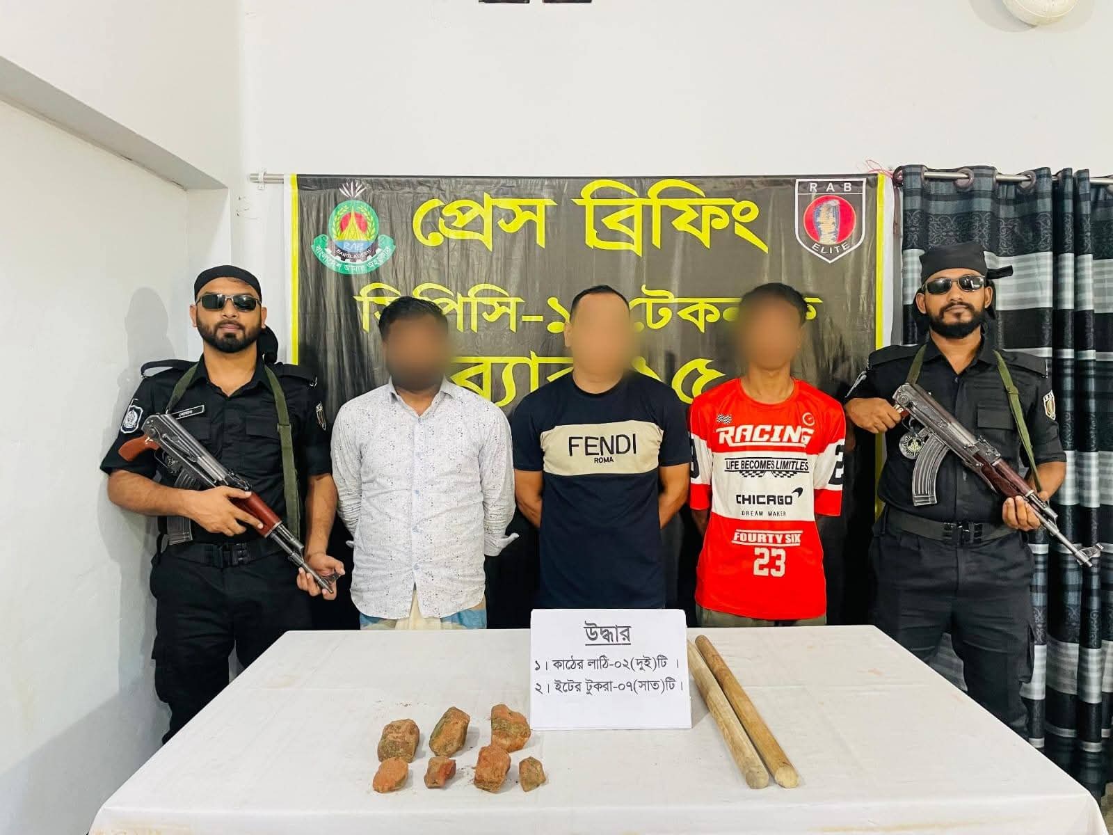গ্রেফতারকৃত আসামিরা হলেন— হ্নীলা ইউপির লেদার পূর্বপাড়ার মৃত লাল মিয়ার পুত্র জাহাঙ্গীর আলম (৩৫), হ্নীলা ইউপির লেদা পুরাতন শরনার্থী ক্যাম্পের ২৪ নং ব্লকের মৃত আ. হামিদের পুত্র মো. ছালাম (১৮) এবং স্থায়ী মহেশখালী উপজেলার কালামারছড়ার দক্ষিণ ঝাপুয়ার ও বর্তমান ঠিকানা হ্নীলা ইউপির পুরাতন স্টেশন এ/পি-লেদার ছৈয়দ নূরের পুত্র মো. আনোয়ার হোসাইন (২৭)।
