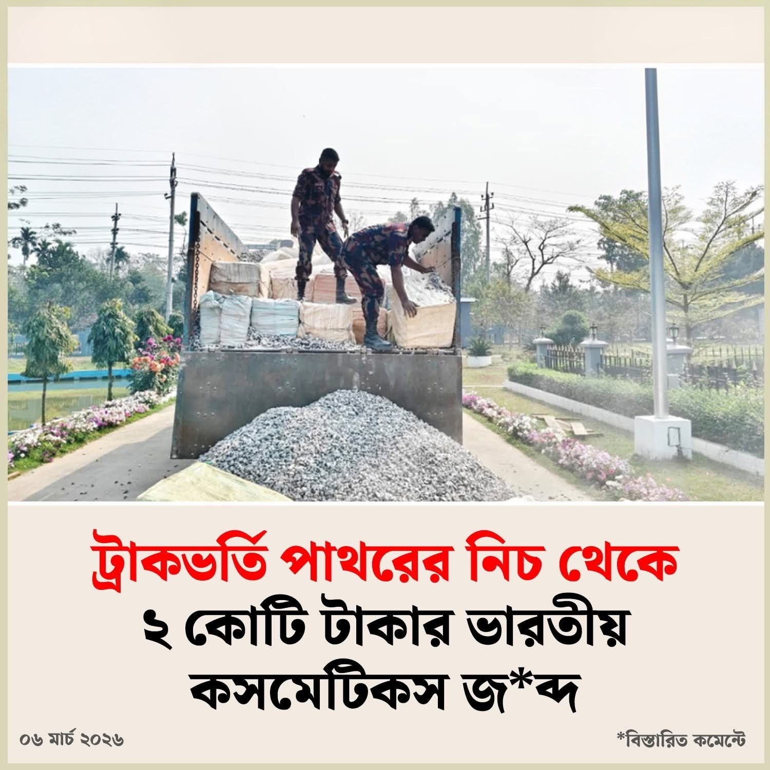 ট্রাকভর্তি পাথরের নিচ থেকে দুইকোটি টাকার ভারতীয় কসমেটিকস জব্দ