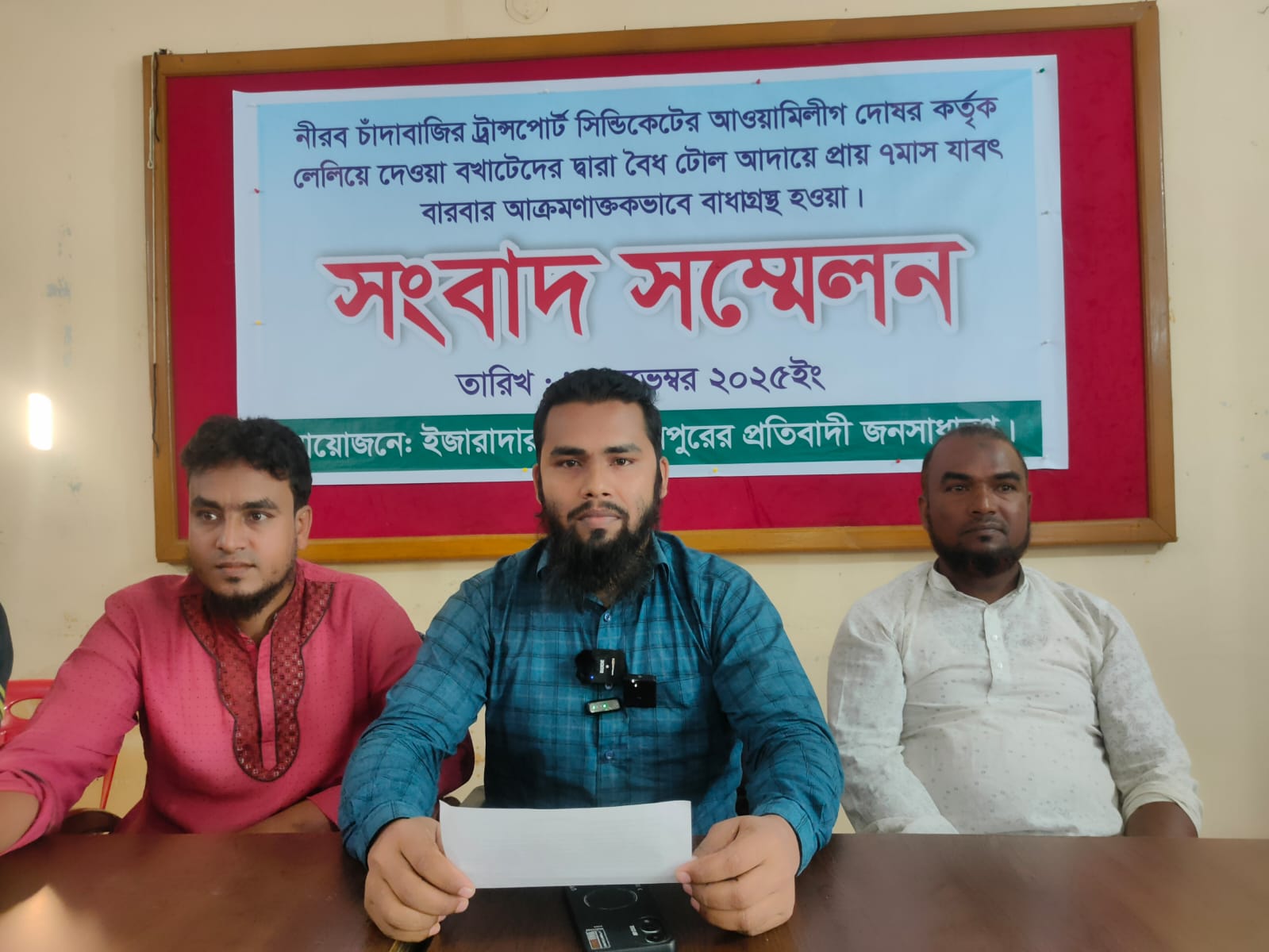 লিখিত বক্তব্যে তারা বলেন, নীরব চাঁদাবাজির ট্রান্সপোর্ট সিন্ডিকেটের আওয়ামী দোসর কর্তৃক লেলিয়ে দেওয়া বখাটেদের দ্বারা বৈধ টোল আদায় গত প্রায় ৭ মাস ধরে আক্রমণাত্মকভাবে বাধাগ্রস্ত হচ্ছে।