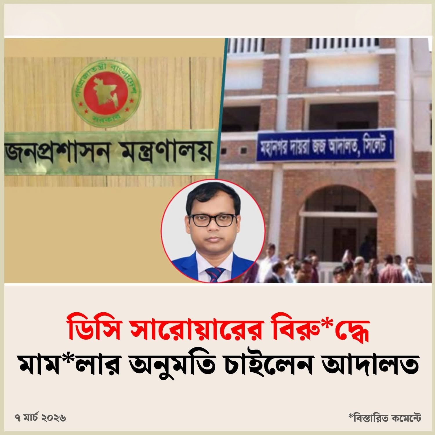 ​আইন অনুযায়ী কোনো সরকারি কর্মচারীর বিরুদ্ধে ফৌজদারি অপরাধে মামলা করতে হলে সরকারের পূর্বানুমতি প্রয়োজন। এই প্রেক্ষিতে আদালত জনপ্রশাসন মন্ত্রণালয়ের সচিবকে নির্দেশ দিয়েছেন, আগামী ১৫ এপ্রিল ২০২৬ তারিখের মধ্যে প্রয়োজনীয় আইনি অনুমতি গ্রহণ করে আদালতকে অবহিত করতে। জুলাই হত্যাকাণ্ডের প্রকৃত দোষীদের শনাক্ত করার প্রক্রিয়ায় প্রশাসনের এমন অসহযোগিতা এবং আদালতের এই নজিরবিহীন কড়া নির্দেশ সিলেটে ব্যাপক আলোচনার জন্ম দিয়েছে।