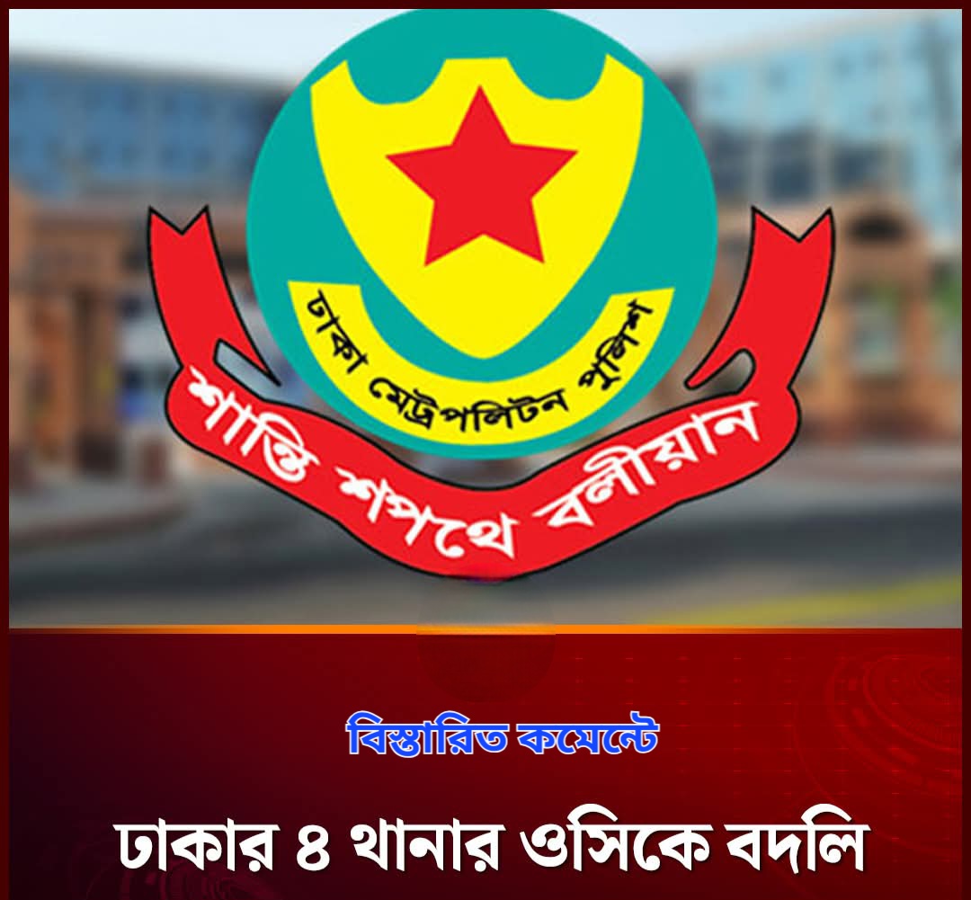 ডেস্ক রিপোর্ট।। ঢাকা মেট্রোপলিটন পুলিশের (ডিএমপি) চারটি থানায় অফিসার ইনচার্জ (ওসি) পদমর্যাদার কর্মকর্তাদের রদবদল করা হয়েছে ।
