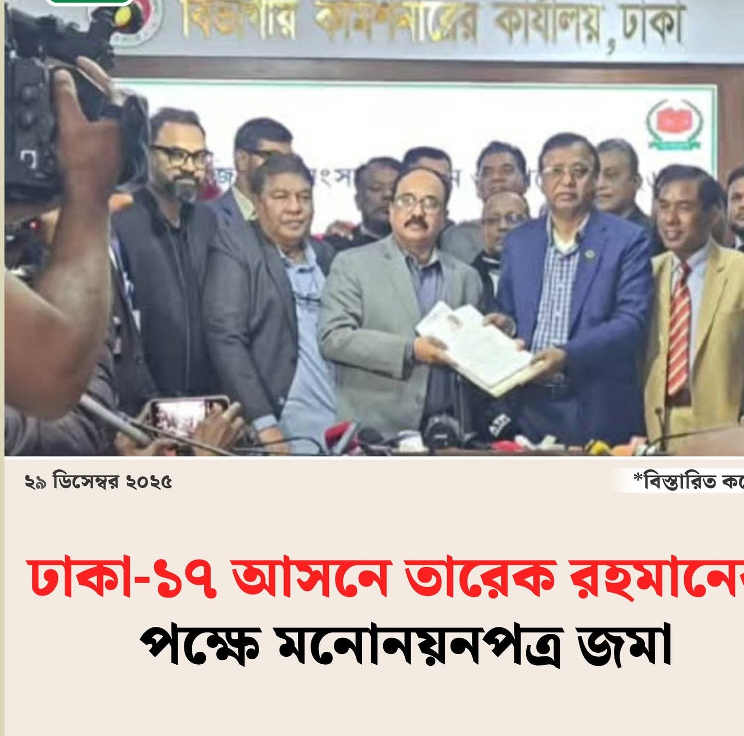 ঢাকা-১৭ আসনে তারেক রহমানের পক্ষে মনোনয়নপত্র জমা