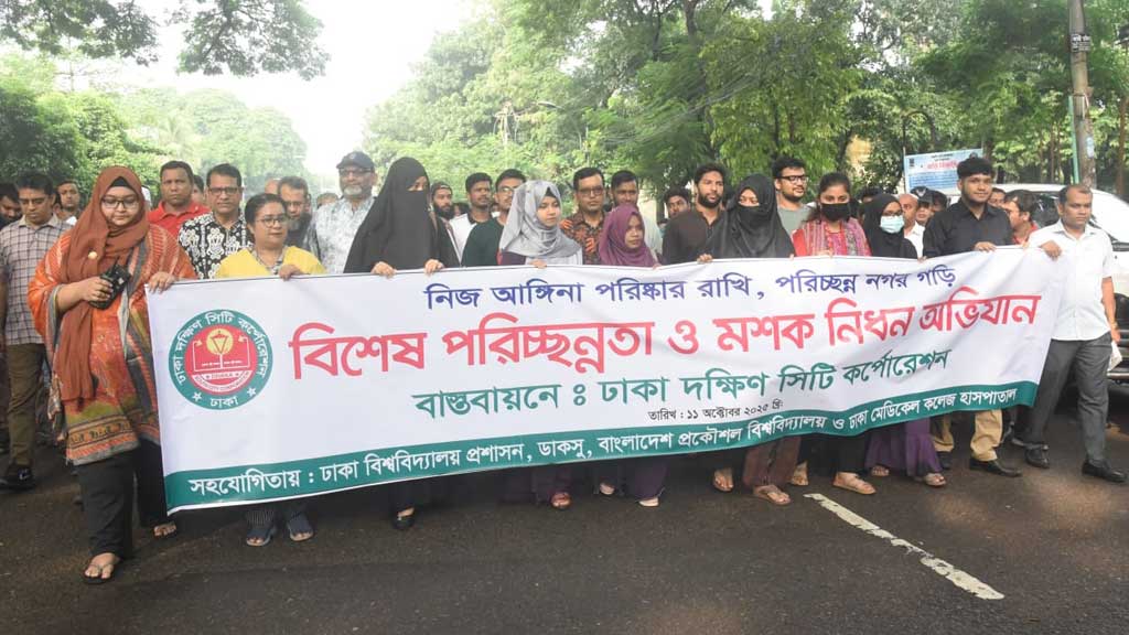 সকাল ৬টায় শুরু হওয়া কর্মসূচিতে ডিএসসিসির ১৩০০ জন কর্মী, ঢাকা বিশ্ববিদ্যালয় ছাত্র সংসদ (ডাকসু) সদস্য এবং ক্যাম্পাসের পরিচ্ছন্নতা কর্মীরা অংশ নেন। এ সময় নর্দমা, ফুটপাতের ময়লা পরিষ্কার করে মশার ওষুধ ছিটানো হয়।