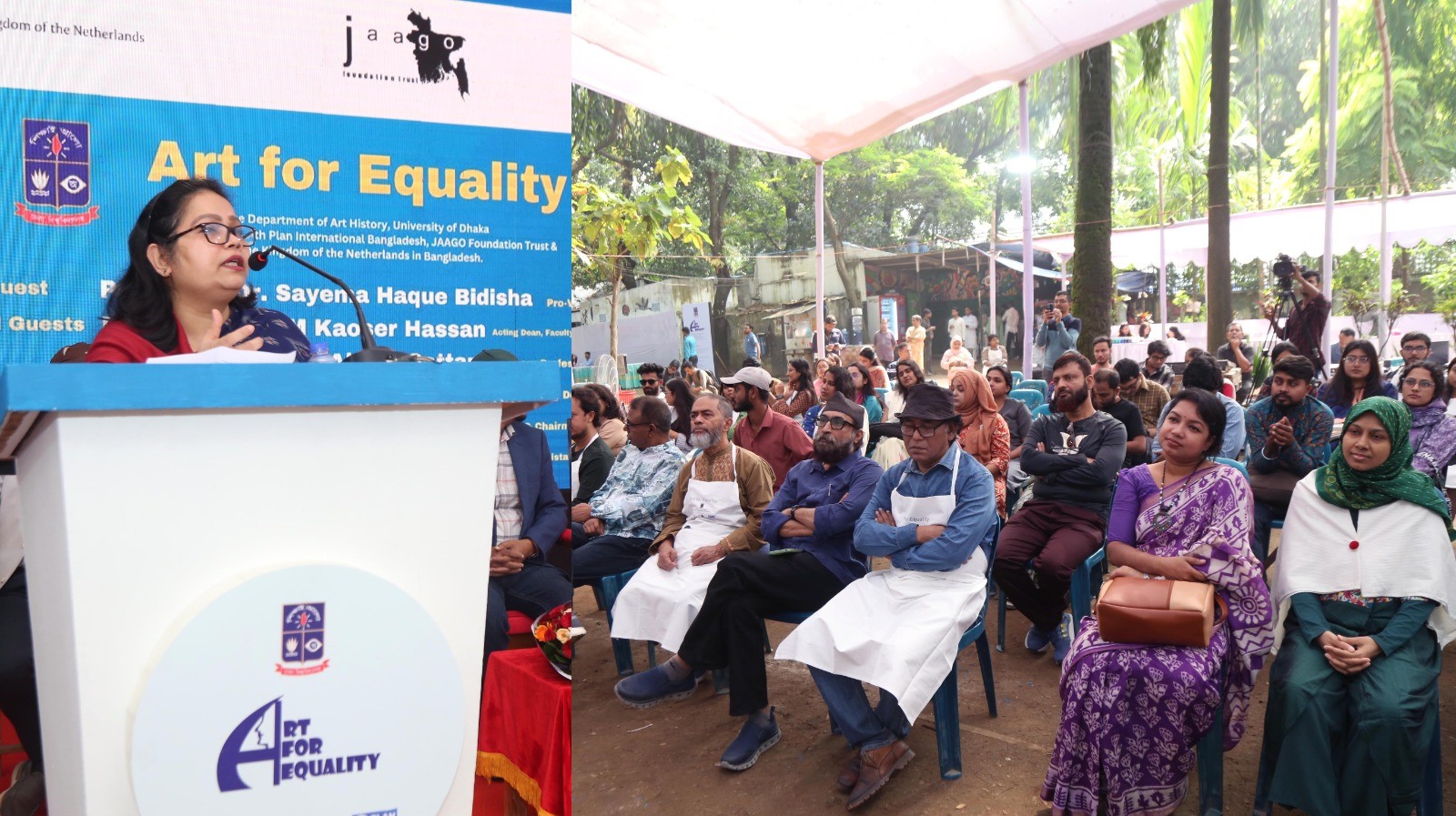 বিভাগীয় চেয়ারম্যান ড. শেখ মনির উদ্দিনের সভাপতিত্বে উদ্বোধনী অনুষ্ঠানে চারুকলা অনুষদের ভারপ্রাপ্ত ডিন অধ্যাপক এ এ এম কাওসার হাসান, জগন্নাথ হলের প্রাধ্যক্ষ দেবাশীষ পাল, প্ল্যান ইন্টারন্যাশনাল বাংলাদেশের ডিরেক্টর নিশাত সুলতানা এবং জাগো ফাউন্ডেশন ট্রাস্টের সিনিয়র ম্যানেজার ইফতিখার-উল-করিম বিশেষ অতিথি হিসেবে বক্তব্য রাখেন। বিভাগের সহকারী অধ্যাপক নিফাত সুলতানা এবং খন্ডকালীন শিক্ষক মেরাজী আশা ঐশী অনুষ্ঠান সঞ্চালন করেন।