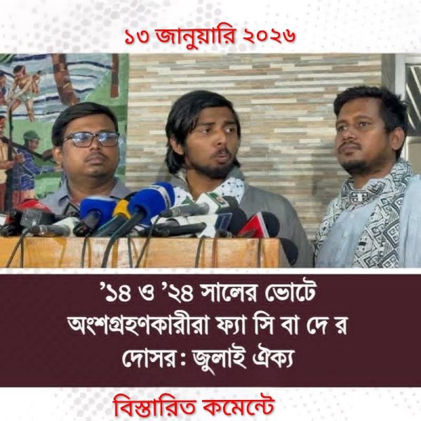 ঢাকা | জানুয়ারী ১৩, ২০২৬ - ৫:১১ অপরাহ্ন