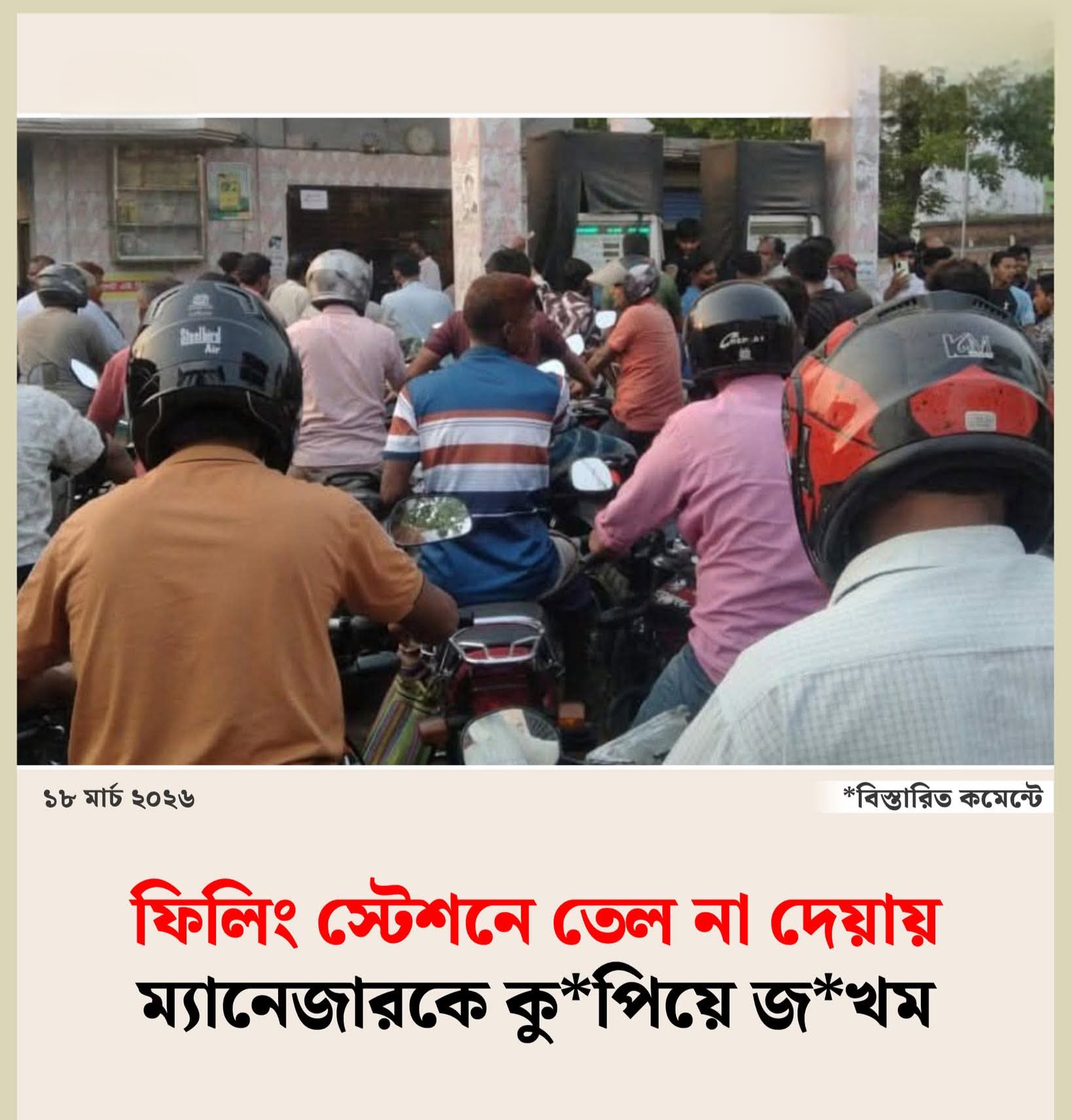 তেল না দেয়ায় ফিলিং স্টেশনের ম্যানেজারকে কুপিয়ে জখম