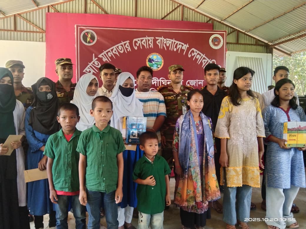 খাগড়াছড়ির দীঘিনালায় সেনাবাহিনী অস্বচ্ছল শিক্ষার্থী ও পরিবারগুলোর মাঝে অনুদান ও প্রয়োজনীয় সামগ্রী বিতরণ করেছে। সোমবার (২০ অক্টোবর) সকাল ১১টায় দীঘিনালা সেনা জোন সদরস্থ হলরুমে অনুষ্ঠিত অনুষ্ঠানে প্রধান অতিথি ছিলেন জোন কমান্ডার লেফটেন্যান্ট কর্নেল ওমর ফারুক, পিএসসি।