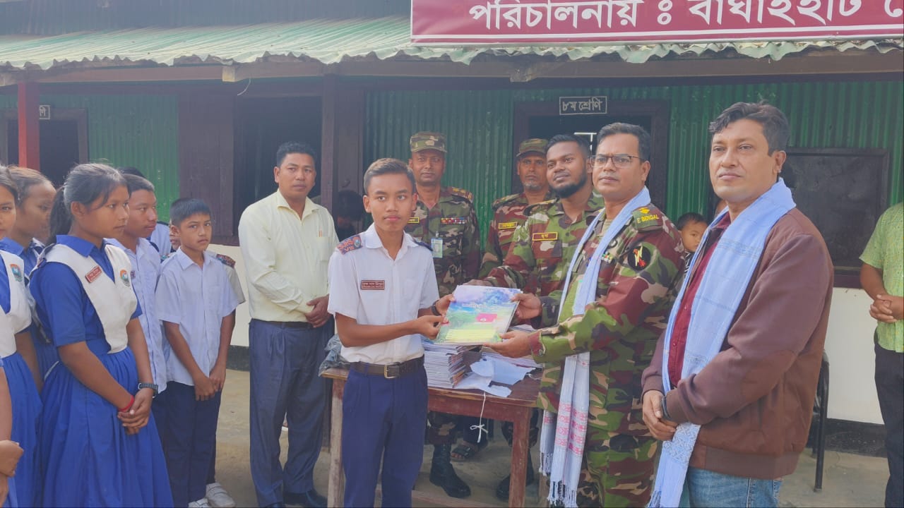 পার্বত্য চট্টগ্রামে দুর্গম পাহাড়ি এলাকার মানুষের আত্মউন্নয়নের নিমিত্তে এবং শিক্ষার আলো ছড়িয়ে দেওয়ার প্রয়াসে ধারাবাহিকভাবে শিক্ষার্থীদের সহযোগিতা ও উৎসাহ প্রদানের অংশ হিসেবে আজ ২৩ ডিসেম্বর ২০২৫ সাজেক জুনিয়র হাই স্কুলে ছাত্রদের মাঝে শিক্ষা উপকরণ এবং স্কুল পরিচালনার জন্য ল্যাপটপ বিতরণ করেন সেনাবাহিনীর জোন কমান্ডার, বাঘাইহাট জোন।