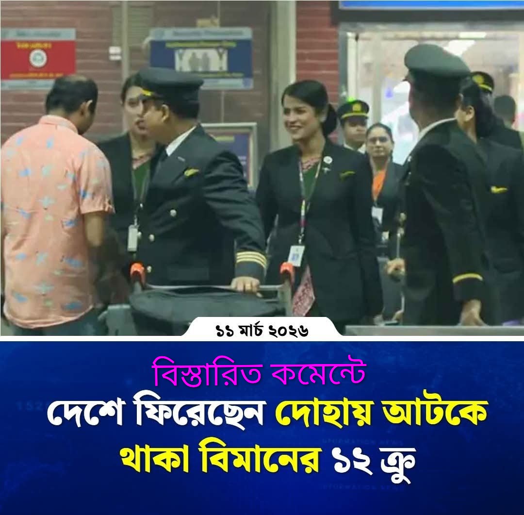 ডেস্ক রিপোর্ট।। মধ্যপ্রাচ্য সংঘাতের কারণে গত ২৭ ফেব্রুয়ারি থেকে দোহায় আটকে থাকা বিমান বাংলাদেশ এয়ারলাইন্সের ১২ সদস্যের ক্রু মঙ্গলবার (১০ মার্চ) রাতে ঢাকায় ফিরে এসেছে। দেশে ফিরে তারা স্বস্তি প্রকাশ করেছেন।