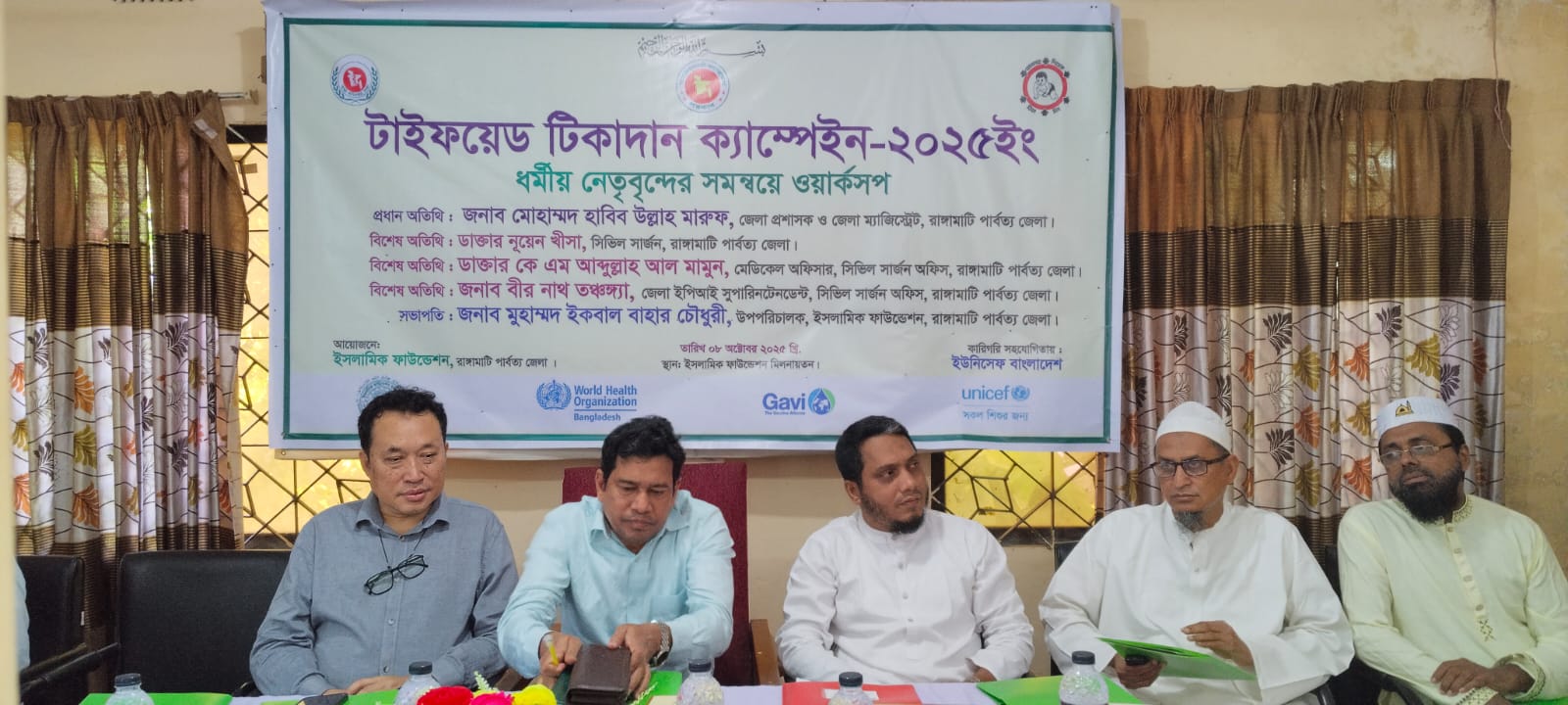 রাঙ্গামাটি ইসলামিক ফাউন্ডেশনের আয়োজনে ধর্মীয় নেতৃবৃন্দের অংশগ্রহণে “টাইফয়েড টিকাদান ক্যাম্পেইন–২০২৫” বিষয়ক দিনব্যাপী পরামর্শমূলক কর্মশালা অনুষ্ঠিত হয়েছে।