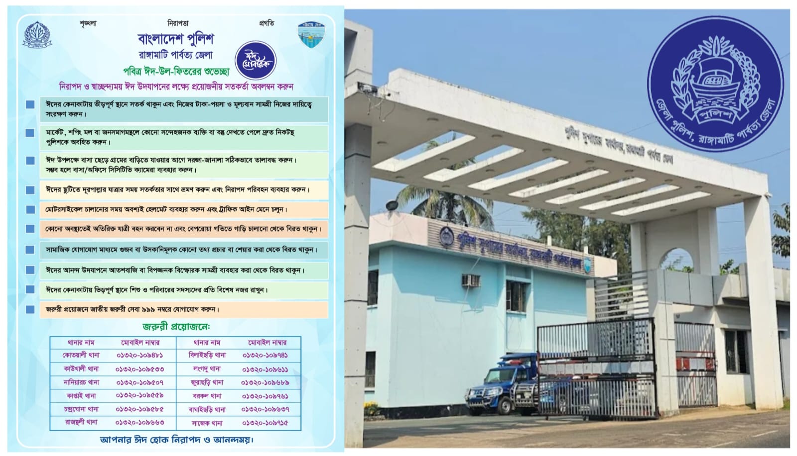 নিরাপদ ঈদ উদযাপনে রাঙ্গামাটি জেলা পুলিশের বিশেষ সতর্কতা