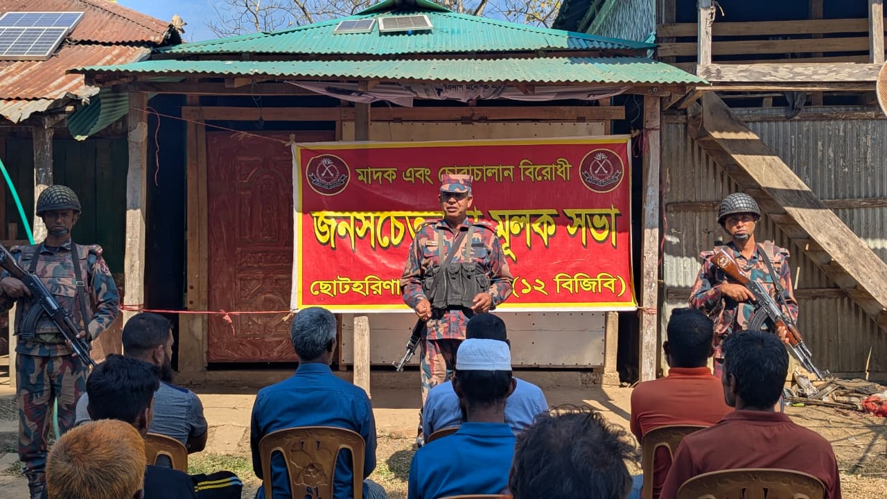 ০৩ ফেব্রুয়ারি ২০২৬ তারিখ মঙ্গলবার সময় ৯টায় ছোটহরিণা ব্যাটালিয়ন (১২ বিজিবি)-এর দায়িত্বপূর্ণ ভুষনছড়া ইউনিয়নের ভুষনছড়া ও এরাবুনিয়া বাজারে ভুষনছড়া ও এরাবুনিয়া বিজিবি ক্যাম্প কমান্ডারের সভাপতিত্বে স্থানীয় জনসাধারণ ও গণ্যমান্য ব্যক্তিবর্গের উপস্থিতিতে মাদকদ্রব্য নিয়ন্ত্রণ ও জাতীয় সংসদ নির্বাচন উপলক্ষে জনসচেতনতামূলক সভা আরম্ভ হয়।