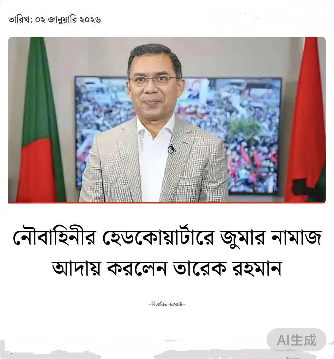 নিজস্ব প্রতিবেদক।। বিএনপির চেয়ারম্যান তারেক রহমান নৌবাহিনীর হেডকোয়ার্টার মসজিদে পবিত্র জুমার নামাজ আদায় করেছেন।