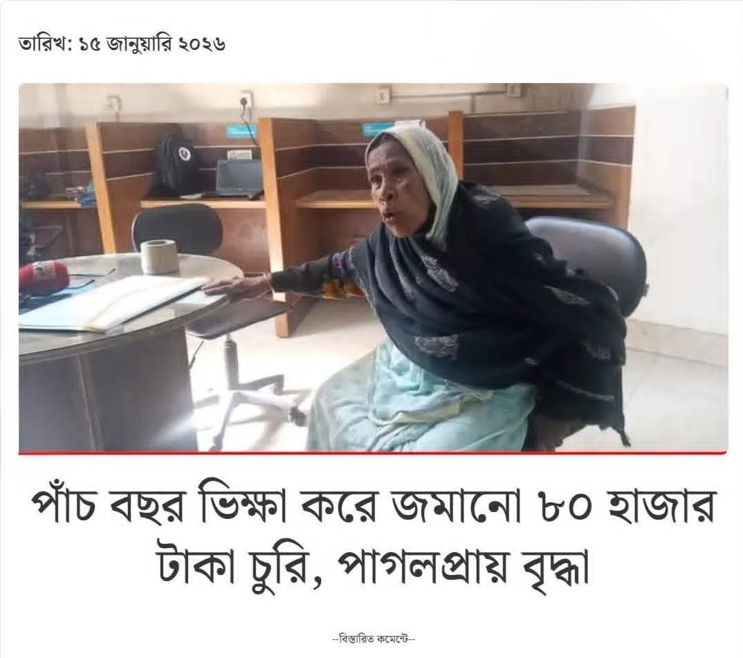 পাঁচ বছর ভিক্ষা করে জমানো ৮০ হাজার টাকা চুরি, পাগলপ্রায় বৃদ্ধা